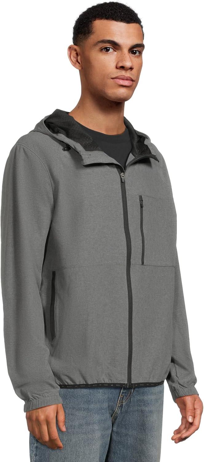 This DWR-treated zip-up blends casual comfort and technical performance. The stretchy blend keeps you moving while the adjustable hood, zip pocket, and welt pockets battle the elements.