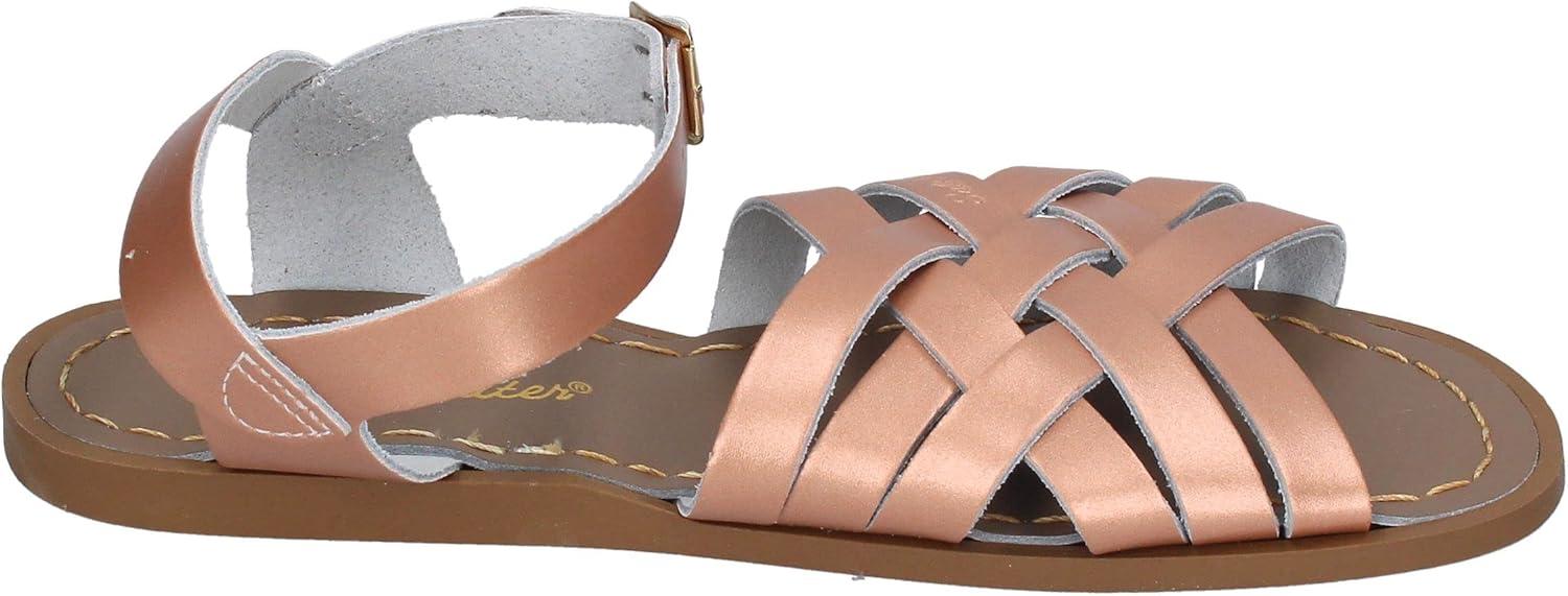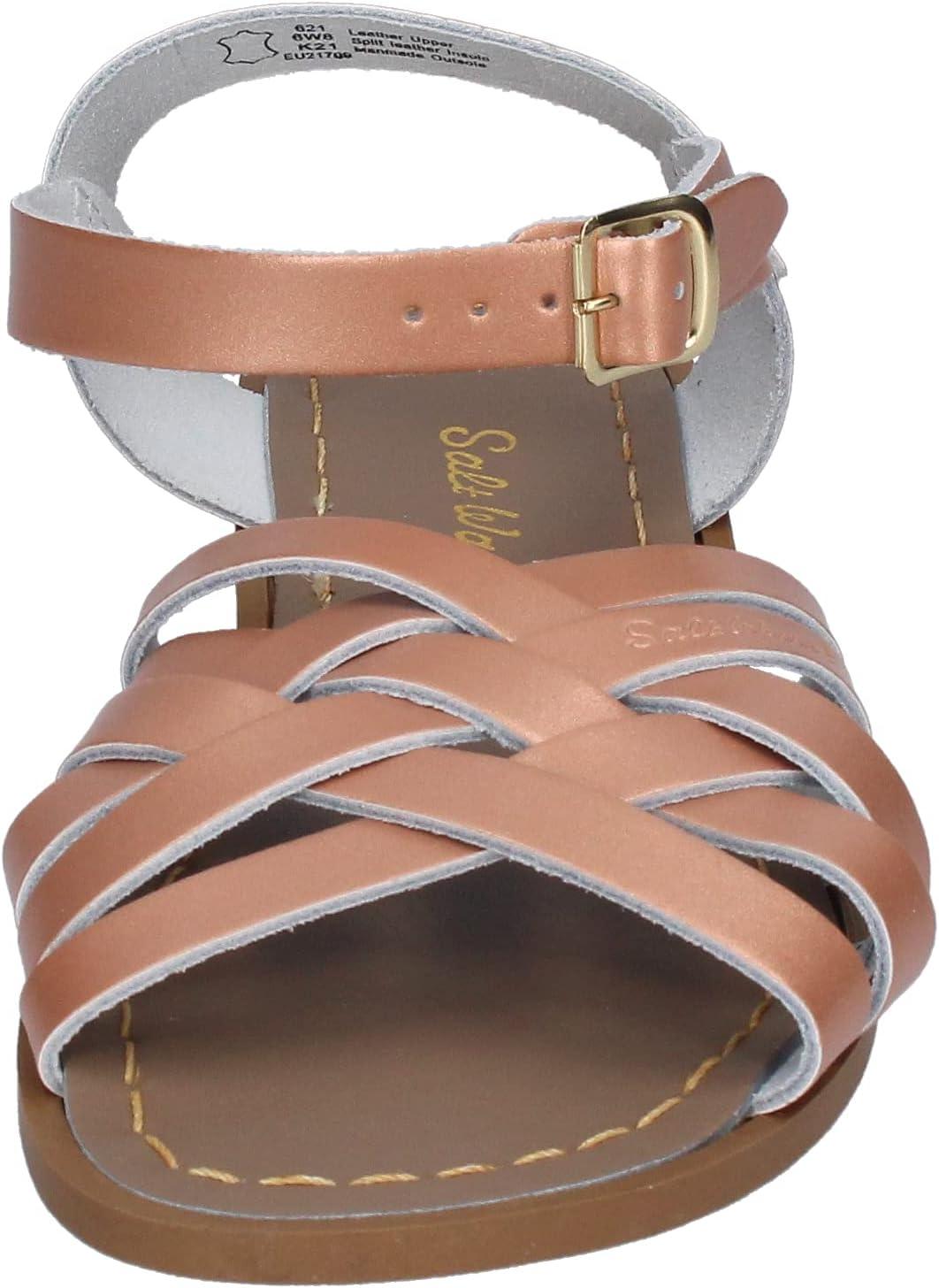 Bring old school beach style back with the Salt Water® Sandal by Hoy Shoes Retro sandal. Water-friendly woven leather upper. Breathable leather lining and footbed. Ankle strap with buckle closure ensures a secure fit. Round, open-toe silhouette. Hand stitched construction. Brass buckles won't rust if you get them wet. Vulcanized rubber outsole. Imported. Measurements: Weight: 7 oz Product measurements were taken using size 8 Big Kid, Women's 10, width M. Please note that measurements may vary by size. Weight of footwear is based on a single item, not a pair.