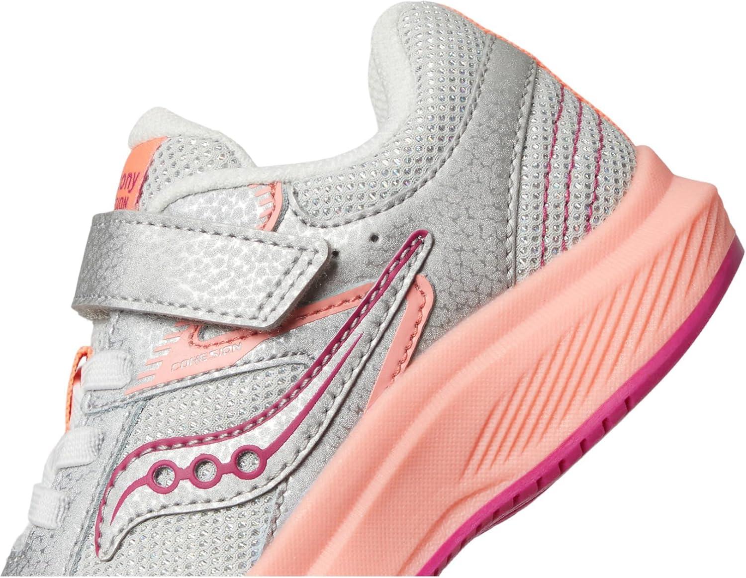 Saucony Unisex-Child Cohesion KDZ Alternative Closure Sneaker(Silver/Coral)