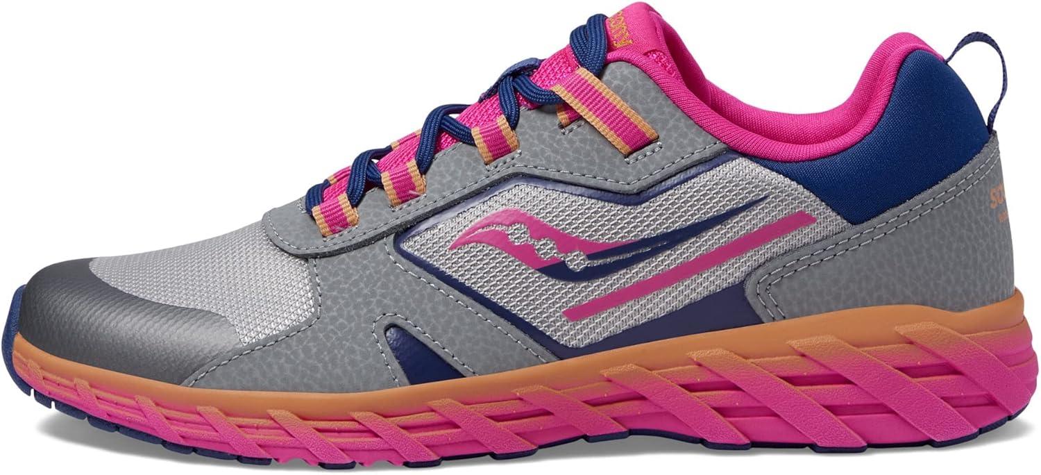 Saucony Unisex-Child Wind Shield 2.0 Running Shoe(Grey/Pink/Navy)