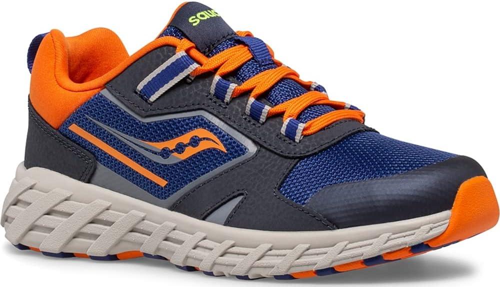 Saucony Unisex-Child Wind Shield 2.0 Running Shoe(Navy/Grey/Orange)