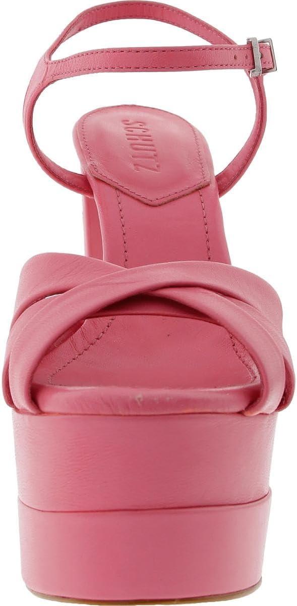 Stay high on fashion and comfort donning the Schutz Keefa High Heels. Leather upper, lining, and insole. Buckle strap closure on the ankle. Round open toe. Chunky high heel. Made in Brazil.
