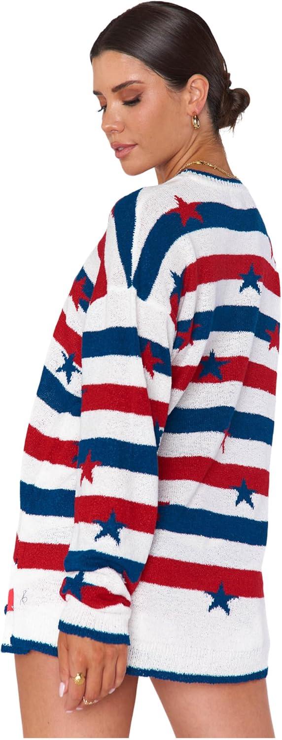 Show Me Your Mumu Women’s Go to Sweater(Star Spangled Stripe)