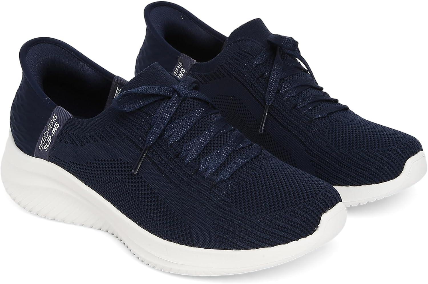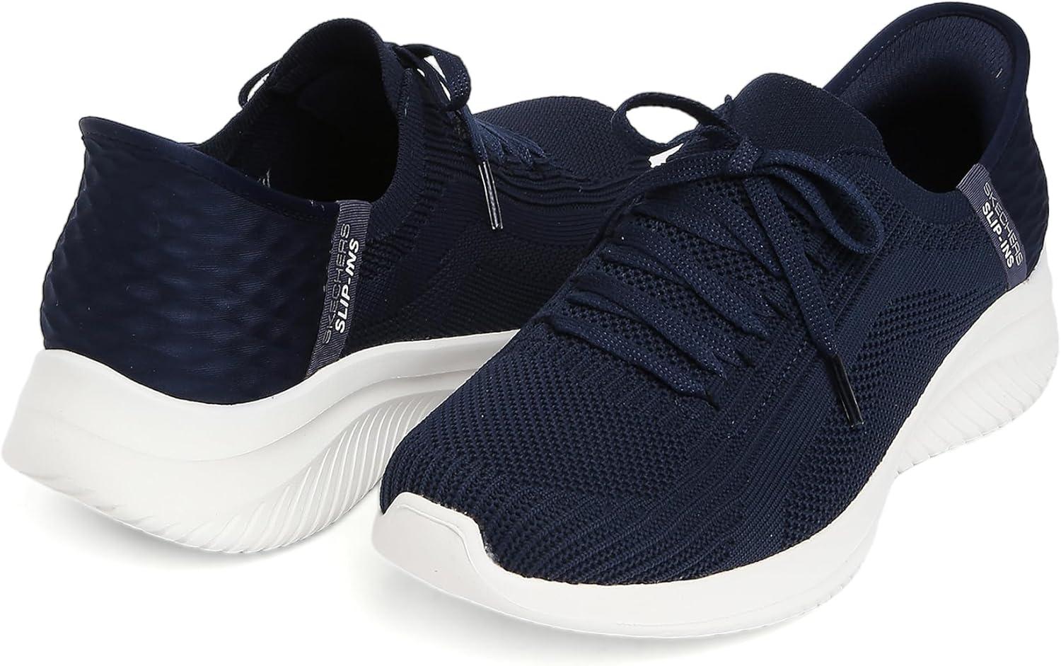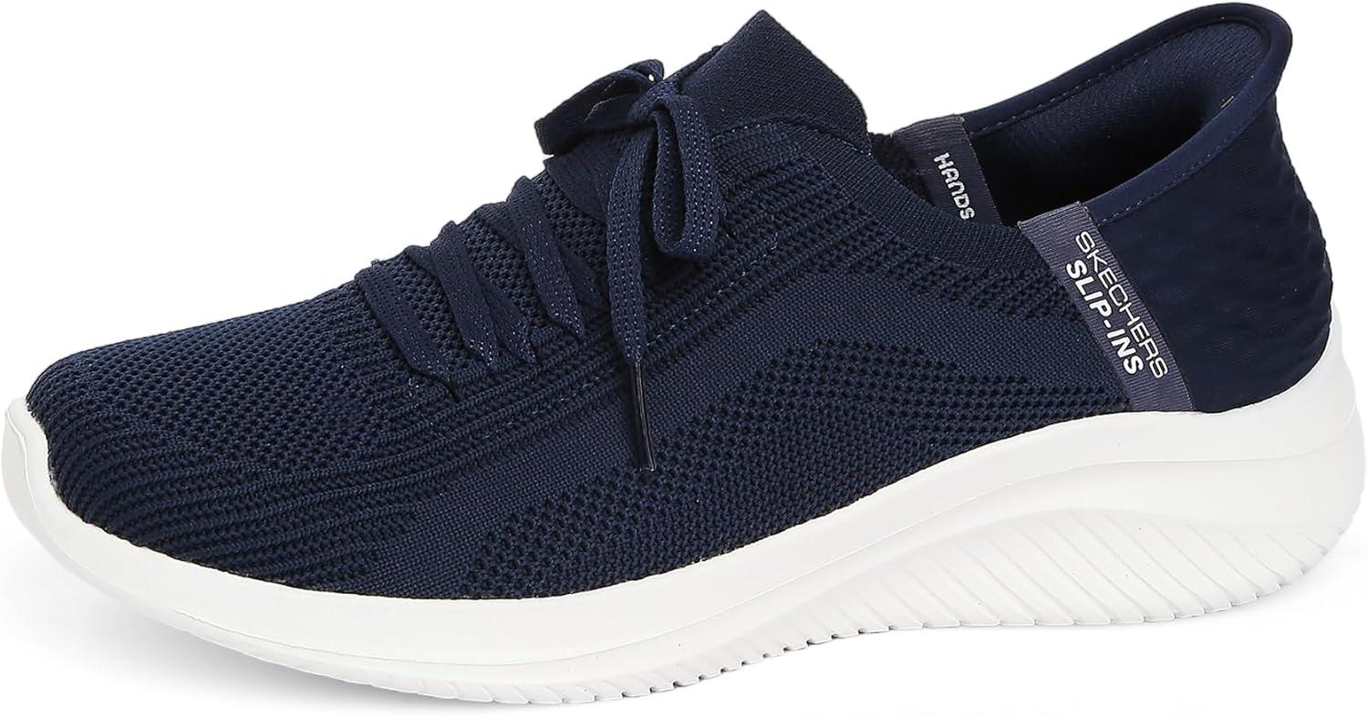 TOUCHLESS FIT™ Step into effortless comfort with Skechers Hands Free Slip-ins™: Ultra Flex 3.0 – Brilliant Path. Designed with our exclusive Heel Pillow™. This style features a Stretch Fit® engineered knit upper with deco laces, plus a cushioned Skechers Air-Cooled Memory Foam® insole.