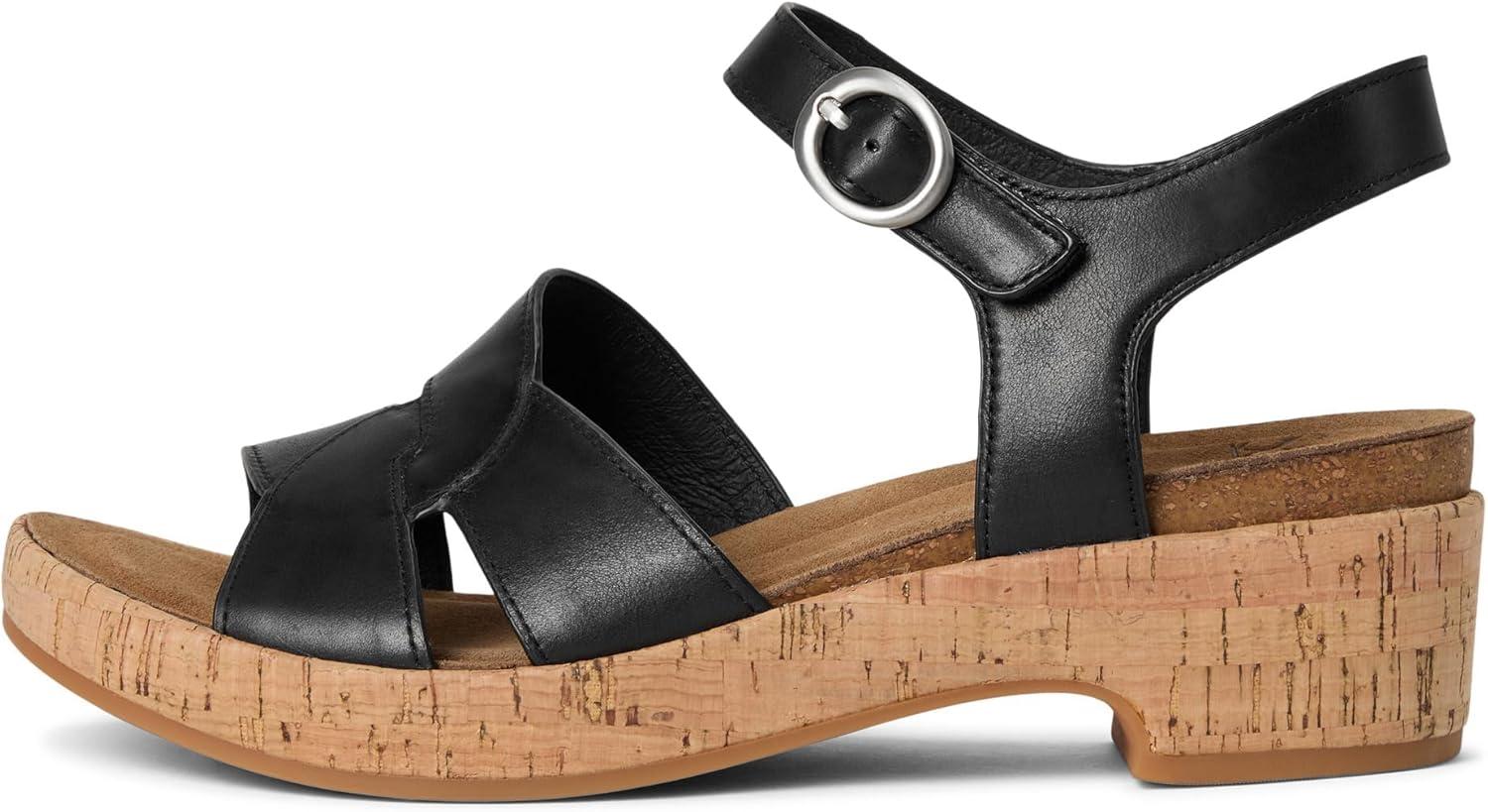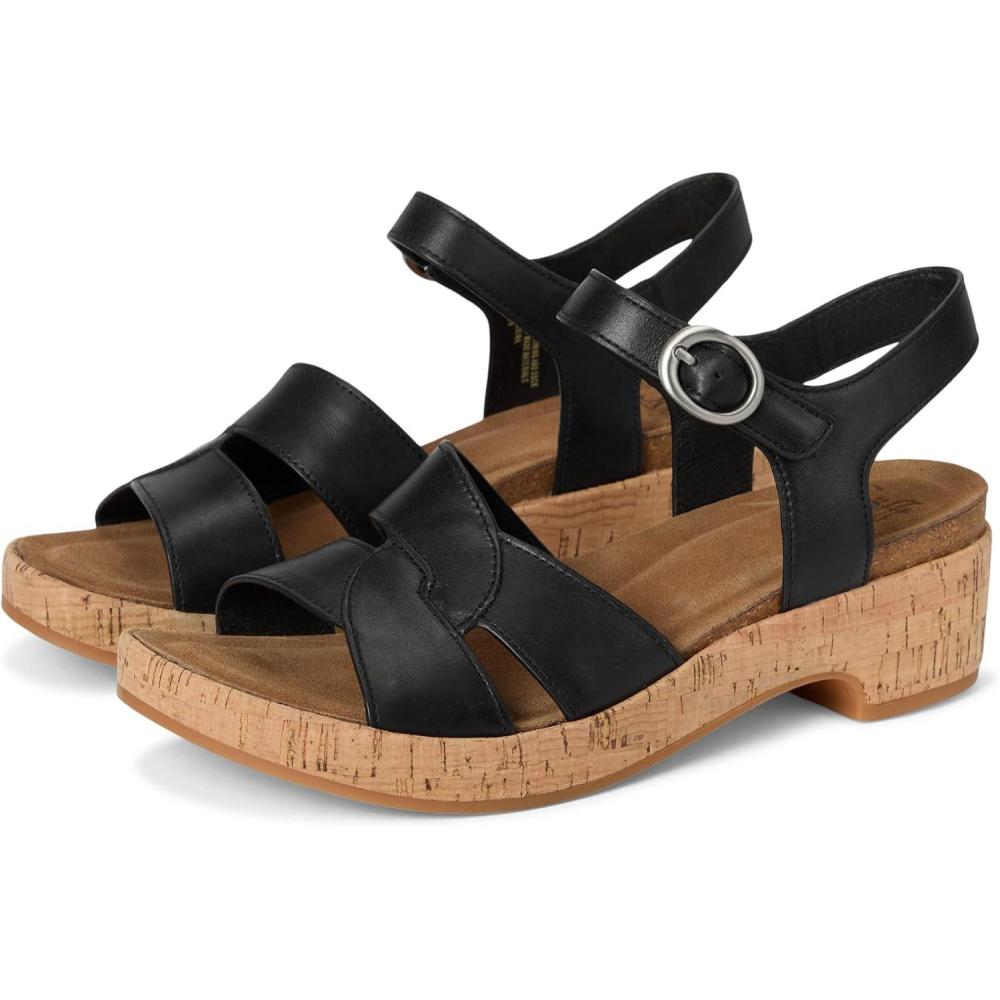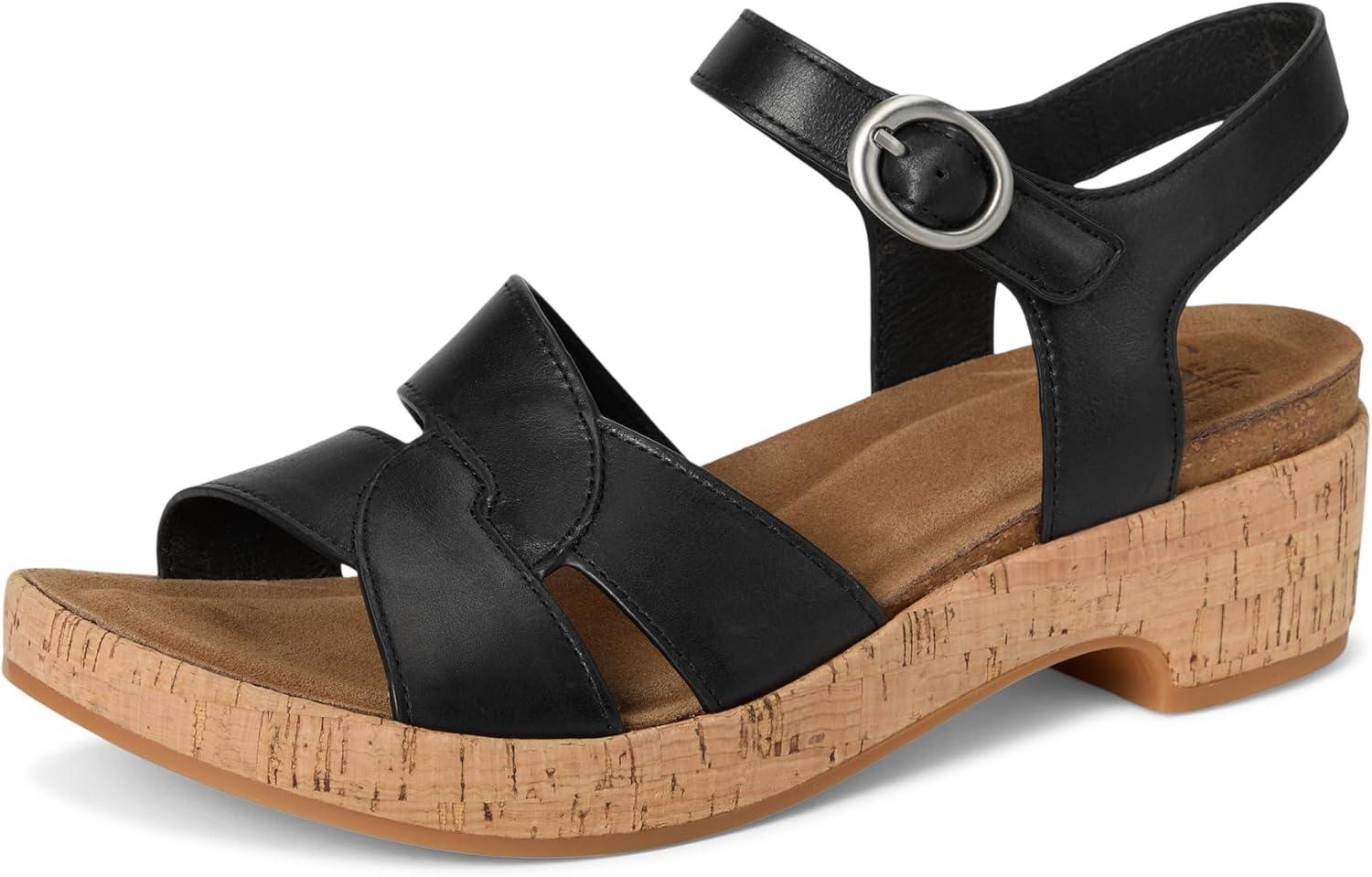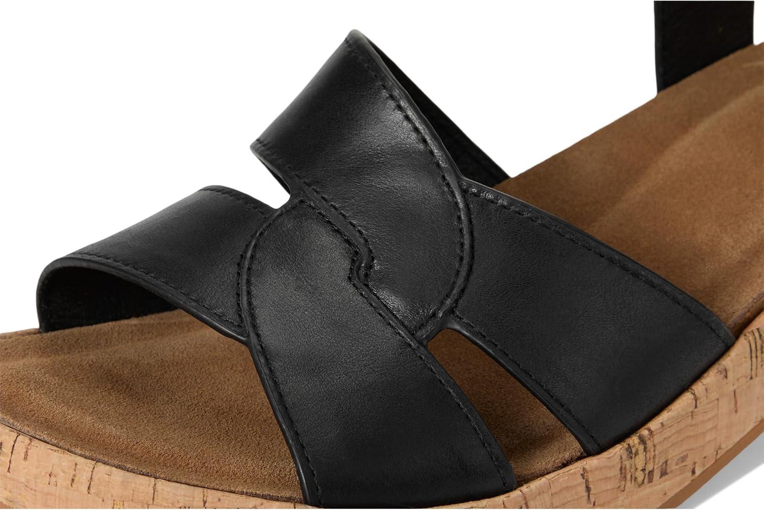 twisted leather vamp, two piece sandal, midheel, padded cork footbed, cork wrapped platform