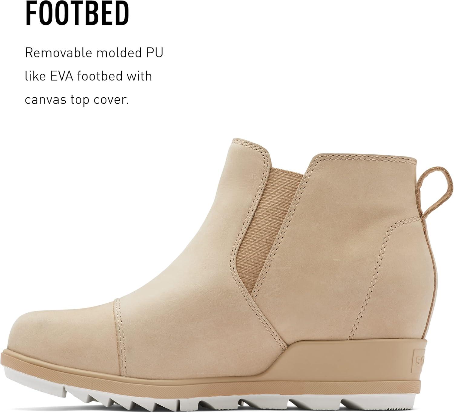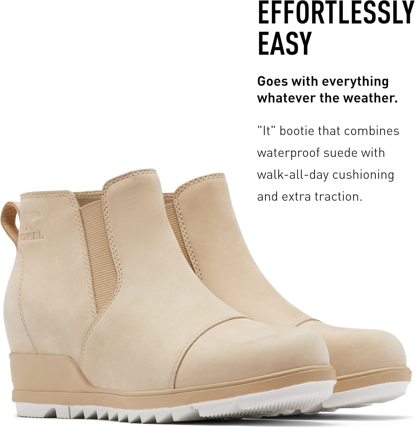 Sorel Women’s Evie Pull-On Bootie — Waterproof Suede Leather — Wedge Ankle Booties(Canoe Sea Salt)