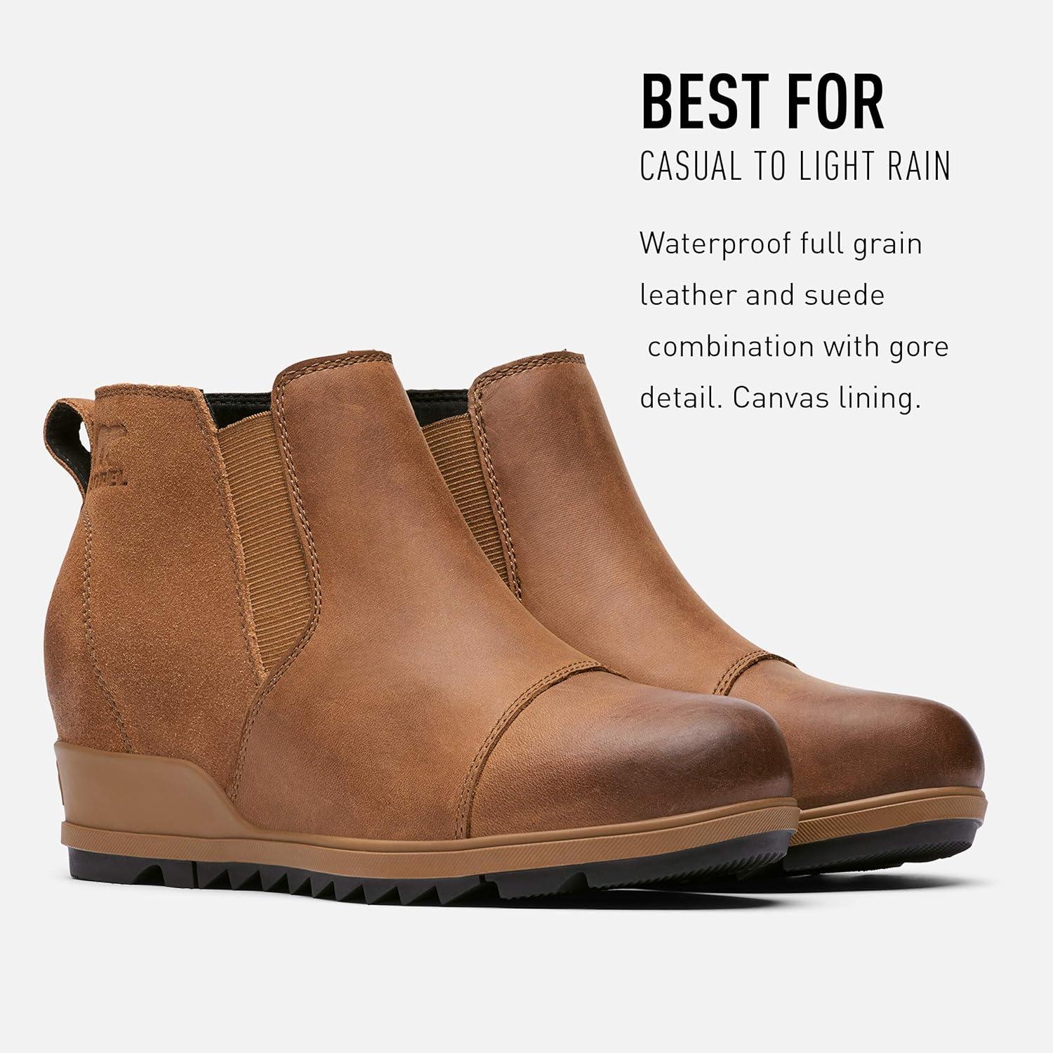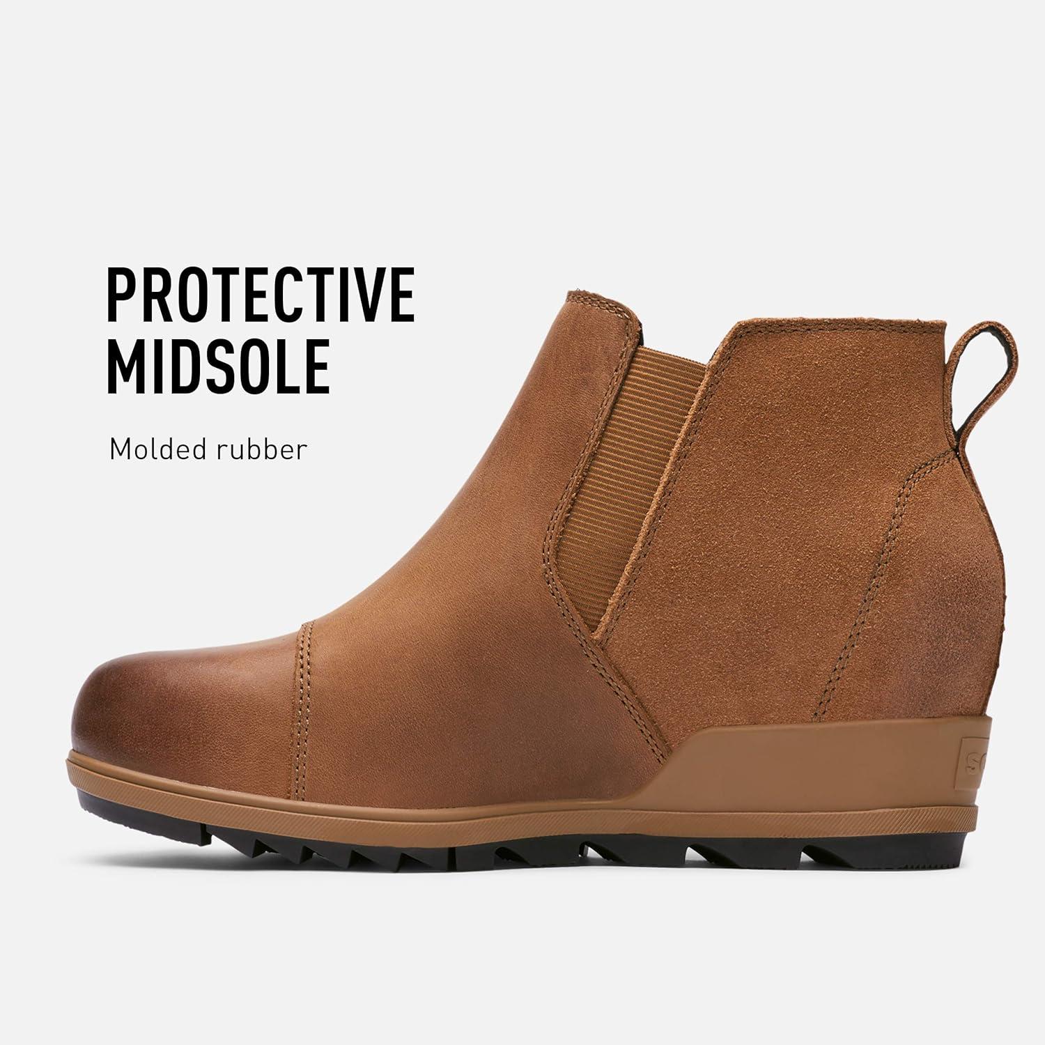 Sorel Women’s Evie Pull-On Bootie — Waterproof Suede Leather — Wedge Ankle Booties(Velvet Tan)