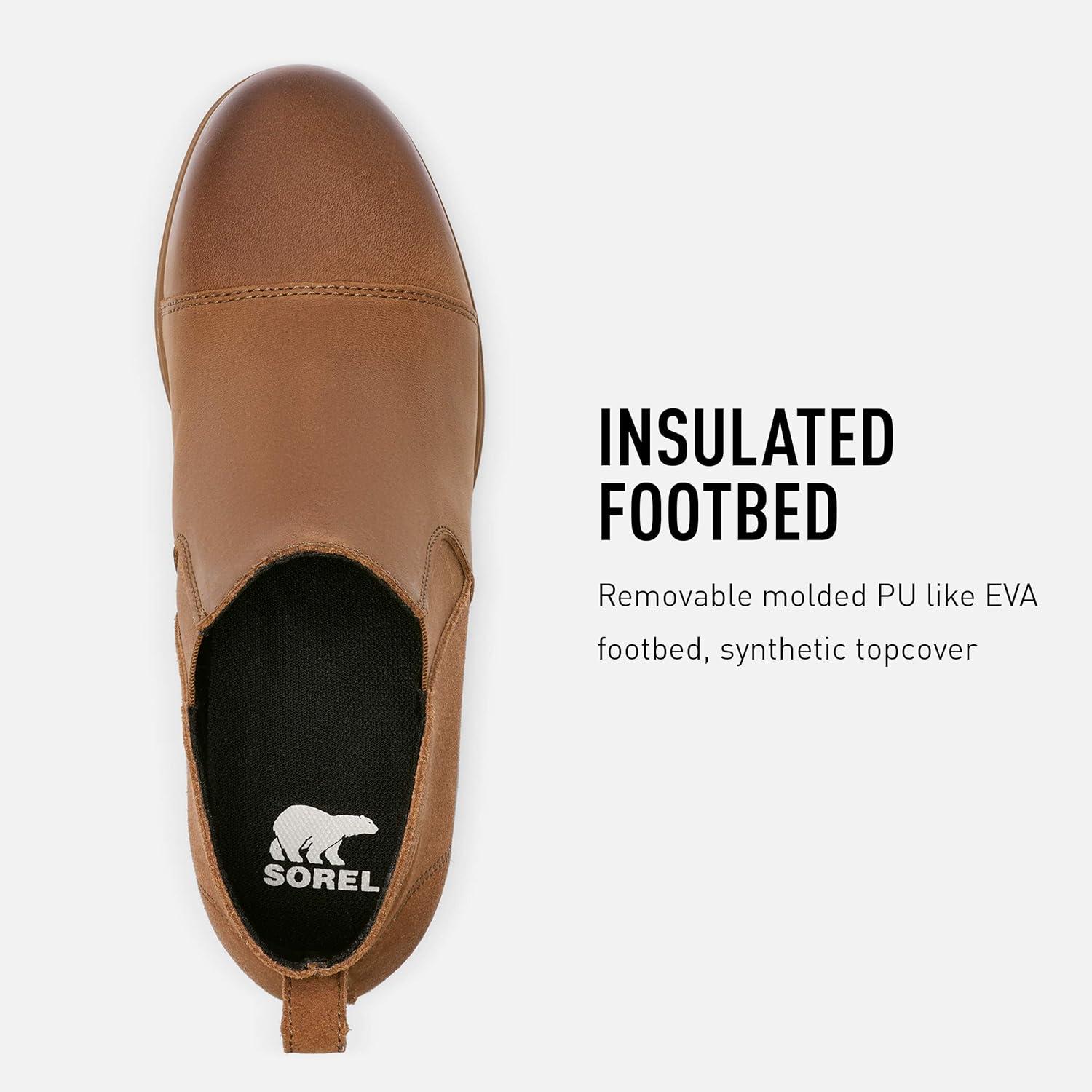 Made to be thrown on, this easy bootie has a soft structured look and a rain-ready design. Be ready for sudden showers with the waterproof suede, and walk around all day comfortably in the comfortable EVA footbed and rubber sole for traction. Founded in 1962, SOREL combines expert craftsmanship and of-the-moment design to create all-season footwear. What began decades ago with premium boots, crafted with an unparalleled balance of construction and protection, is now a brand dedicated to both functionality and fashion. Here at SOREL we believe you are your most powerful tool and the determination you find within is an unstoppable force. SOREL challenges the status quo by creating unexpected footwear that pushes the boundaries of function-first fashion. We stay in motion so you can push yourself forward.