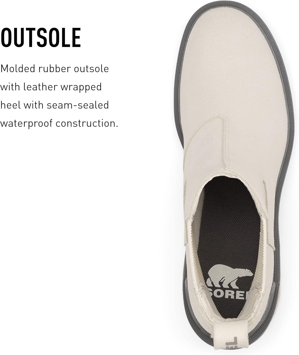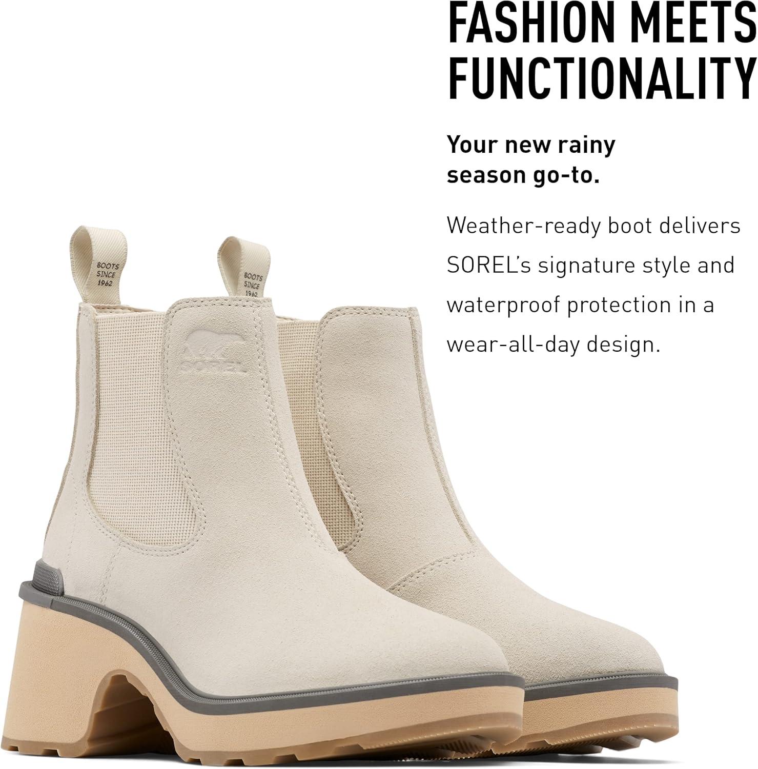 Raising the bar on classic Chelsea Boots, SOREL's Women's Hi-Line Heel Chelsea Boots are the perfect blend of style and function. These Boots feature a minimal, durable design. These rain Boots are crafted from waterproof suede, ensuring your feet stay dry and comfortable through all your adventures. The chunky platform and block heel add a fashionable touch, while the high-quality lug sole provides excellent traction and support. The cozy, memory foam-like EVA insole ensures good footing, and the inclusion of a nylon heel pull tab allows for effortless entry. Available in multiple colors and styles, these slip-on Boots are perfect for everyday wear and are easy to pair with any outfit. Don't let wet conditions hold you back—these waterproof shoes are great for any rainy day.