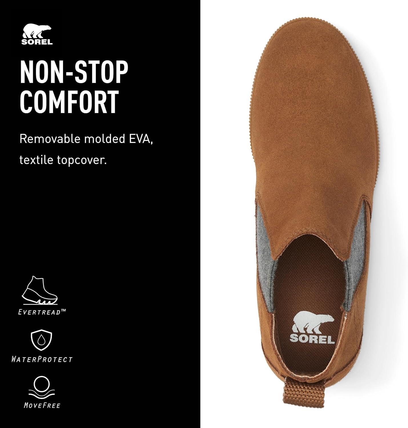 UP FOR EVERYTHING Inspired by SOREL’s classic Out ’N About boot, this wedge has a go-anywhere, do-anything attitude. It features a slip-on suede upper boosted by the non-stop comfort of an EVA foam footbed. A vulcanized rubber sole keeps you elevated above the elements.