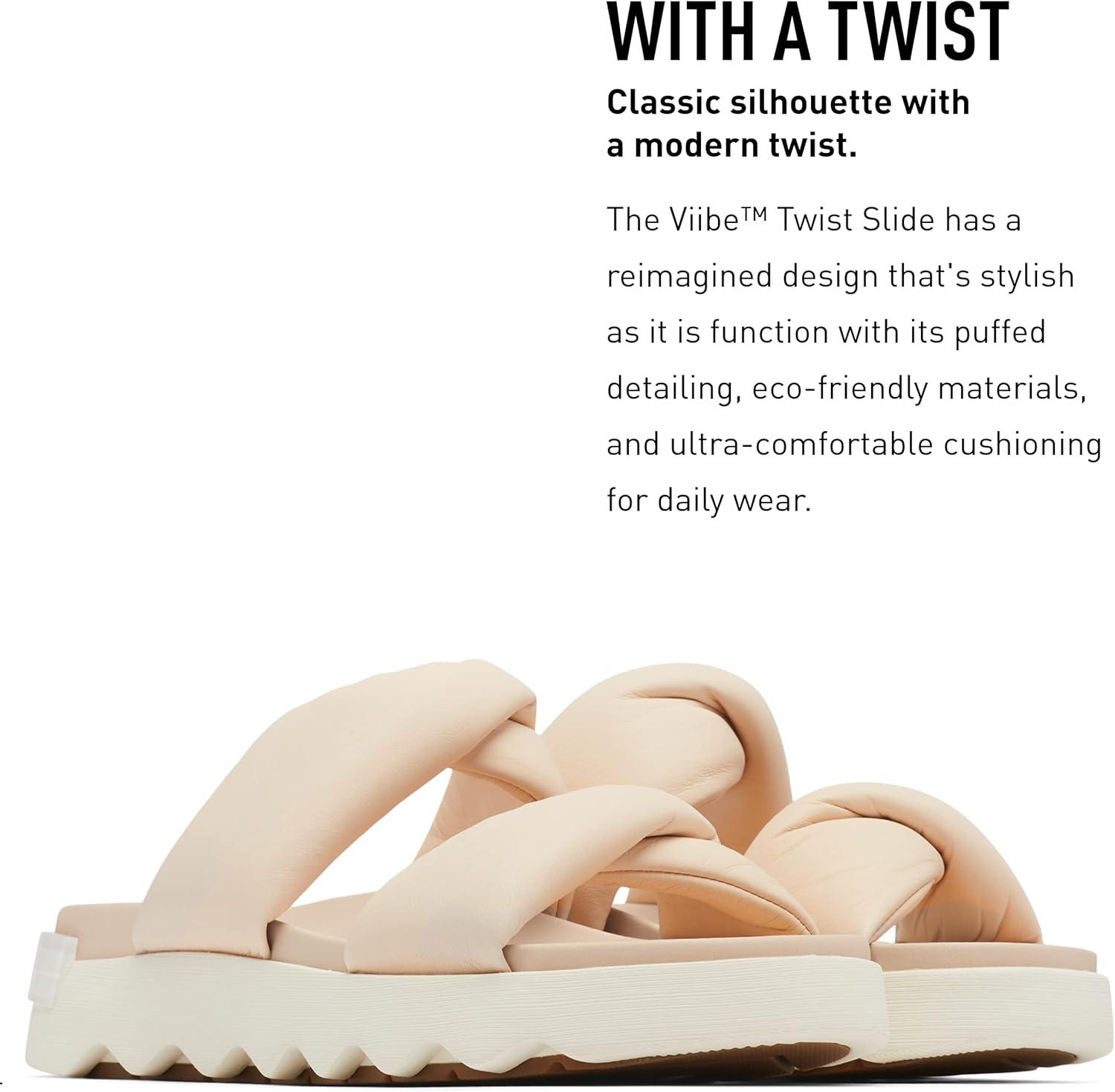 Walk in style when you wear the SOREL VIIBE Twist Slide. New from SOREL, the Viibe Twist Slide is a classic silhouette with a modern twist. It's as fun as it is functional, with puffed-up straps and EVA cushioning that supports in all the right places. The scalloped sole is lightweight enough for all-day wear, so you can explore without anything slowing you down.