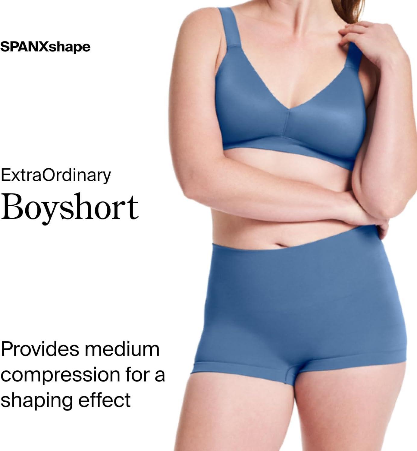 Meet the SPANXshape ExtraOrdinary Boyshort—your solution for a supported, smooth shape, all while championing earth-friendly materials. Made with SENSIL EcoCare recycled nylon fabric, this seamless style feels good and does good for the environment. This boyshort provides strong support with powerful compression. The result? A shapewear panty that's as good for the planet as it is for your silhouette.The SPANXshape ExtraOrdinary Boyshort has a seamless construction, giving you the confidence to wear this brief under your favorite outfits with no visible lines. The shaping waistband is designed to sculpt with strong support. This boyshort is made of 89% nylon, 10% elastane, and 1% cotton, ensuring this breathable underwear feels comfortable throughout the day. With a seamless shaping waistband that doesn't dig, the EcoCare Seamless Shaping Boyshort gives you comfortable support that's invisible under clothing. The flat leg opening ensures a distraction-free experience. This boyshort fits slightly small. Machine wash warm. Only non-chlorine bleach when needed. Tumble dry low. Do not iron or dry clean. Wear it and feel the difference as you go about your day, supported and comfortable. SPANX is a brand for women, by women. So, we understand what it feels like to be everything, to everyone, all at once—and needing clothes that can do the same. Our pieces are designed to effortlessly adapt to your busy lifestyle, ensuring you feel confident and comfortable—no matter the occasion. Because we firmly believe when you feel your best, you do your best.