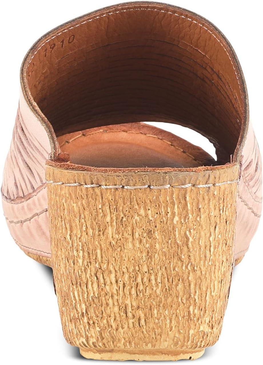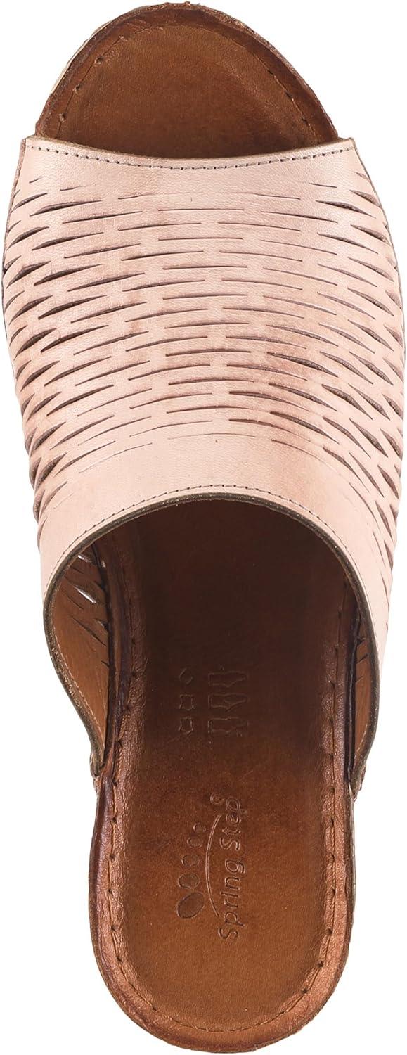 Spring Step Cunacena Women’s Leather Slip On Wedge Sandal | Low Heel Sandals for Women with Die Cut Lattice, Stretch Upper, Breathable Lining(Light Pink)