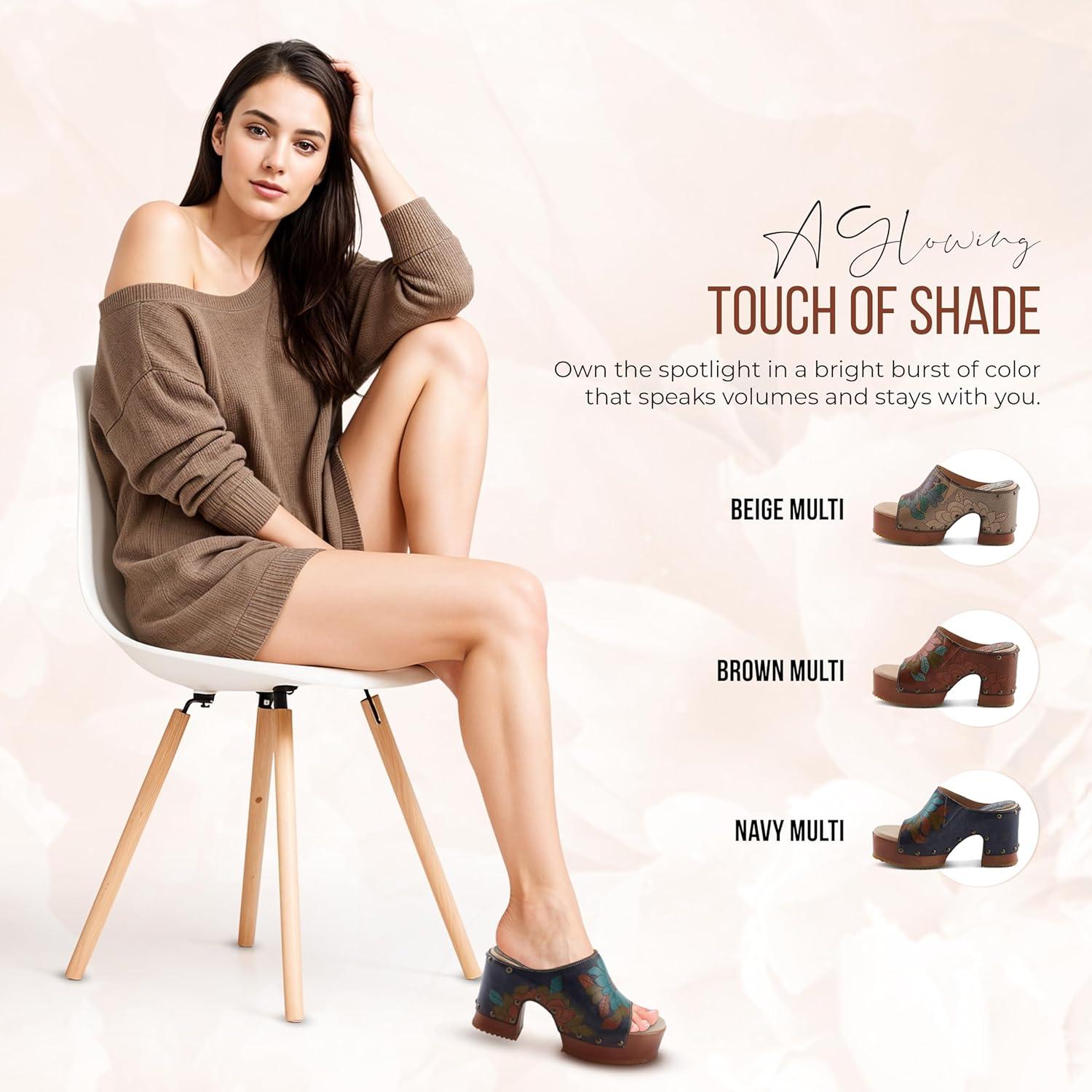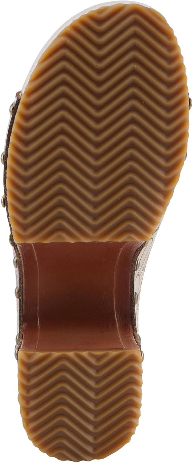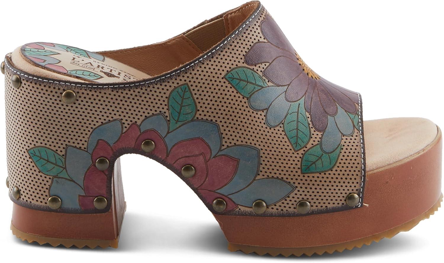 Spring Step L’artiste Teeshirt Women’s Sandals – Handpainted Leather Slides, Retro Floral Design, Cushioned Footbed, Slip-On(Beige Multi)