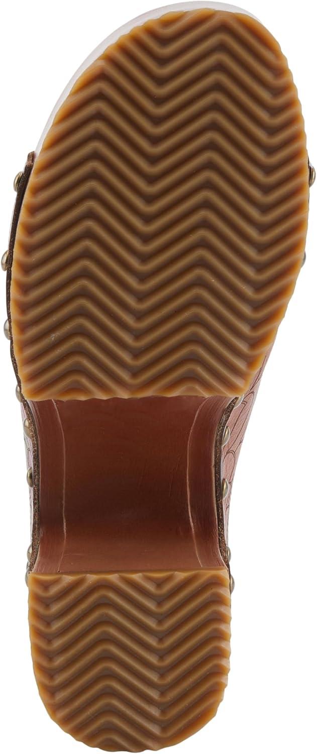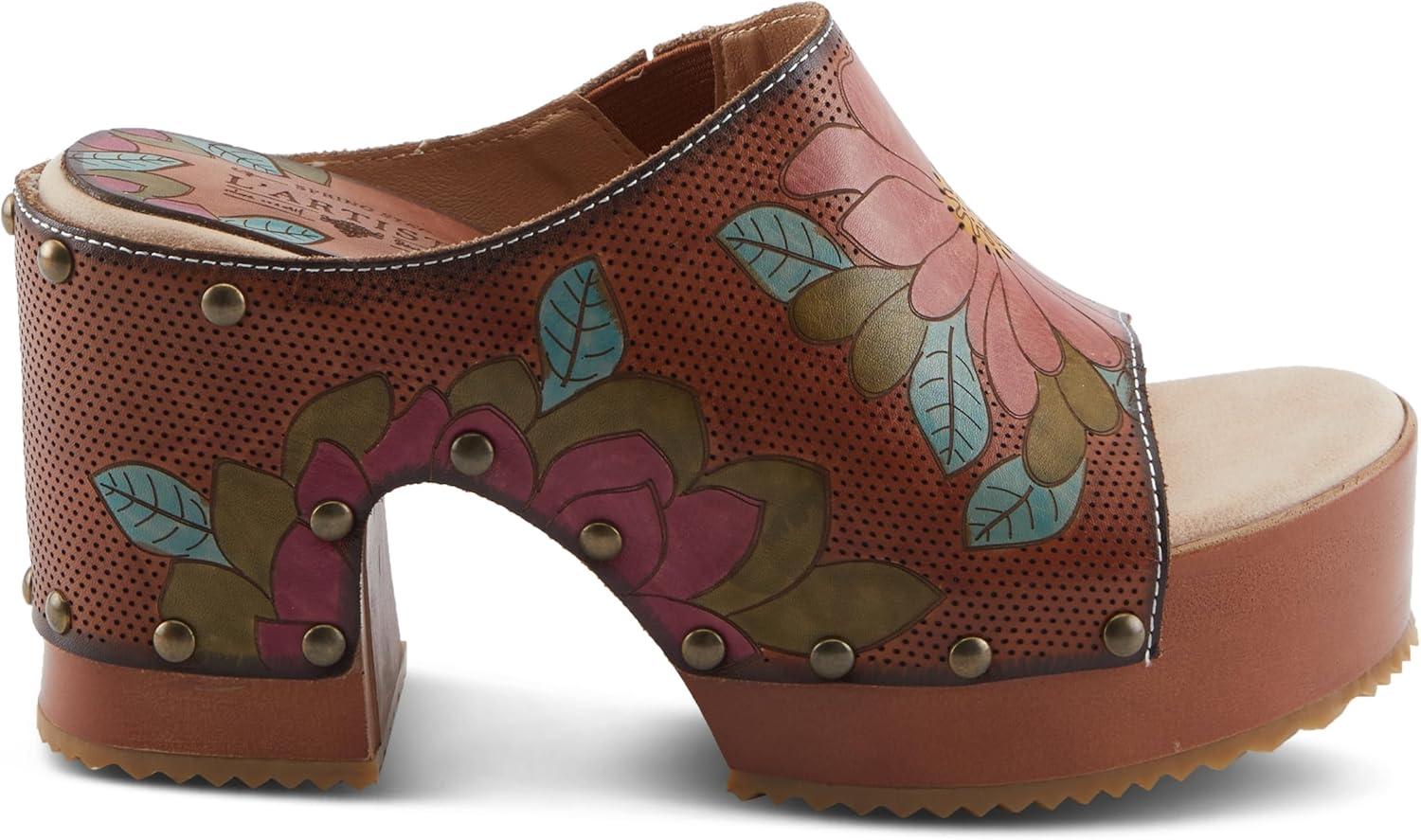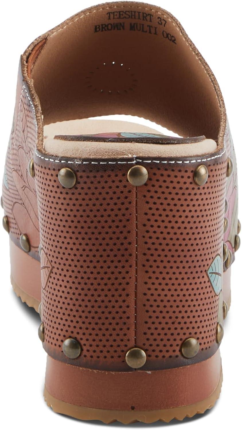 Spring Step L’artiste Teeshirt Women’s Sandals – Handpainted Leather Slides, Retro Floral Design, Cushioned Footbed, Slip-On(Brown Multi)