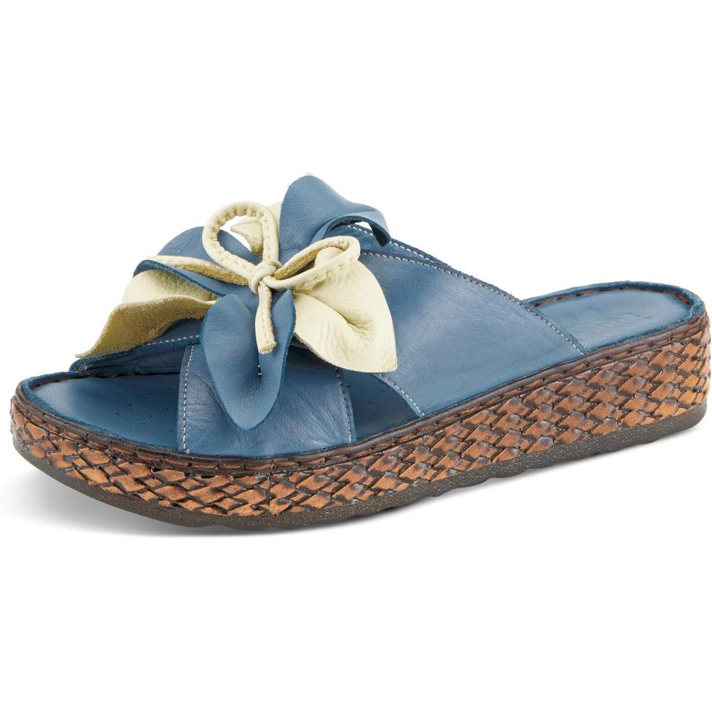 Spring Step Style: HILARY Make a dynamic statement with this buttery soft leather slide. The foot bed and sole of the sandal is carefully crafted for comfort with its padded and lightweight sole on a flexible forefoot that moves with your every step. The layered flower and bow detail brings that touch of whimsy and the diamond pattern wrapped around the platform gives it a slight rugged edge. Upper: Leather Lining: Leather Insole: Leather Outsole: Polyurethane Closure: Slip-on Heel Height: 1 1/2″ Platform Height: 1″ Features: – Comfort, Flexible Sole, Padded Insole, Premium Made in Turkey