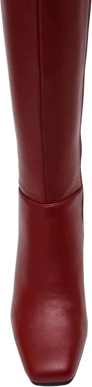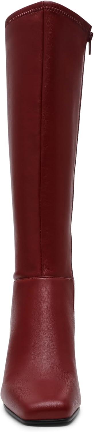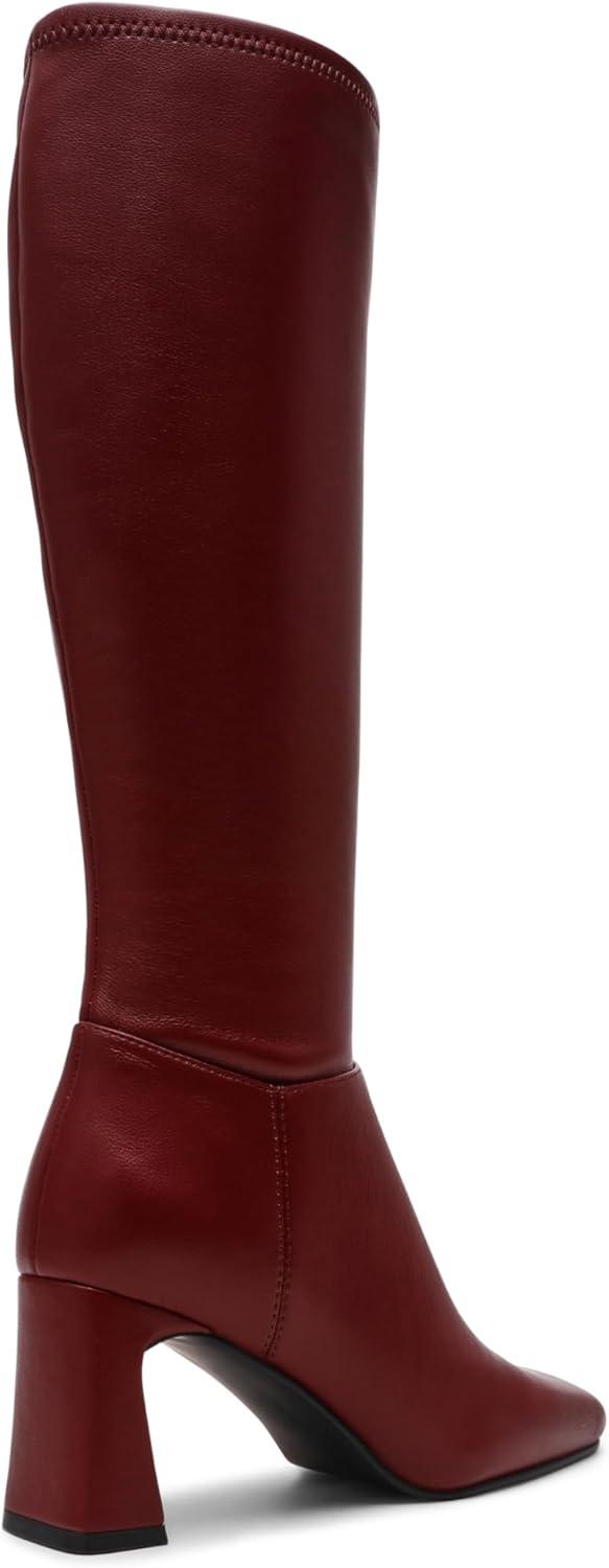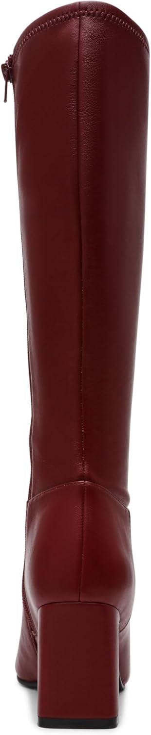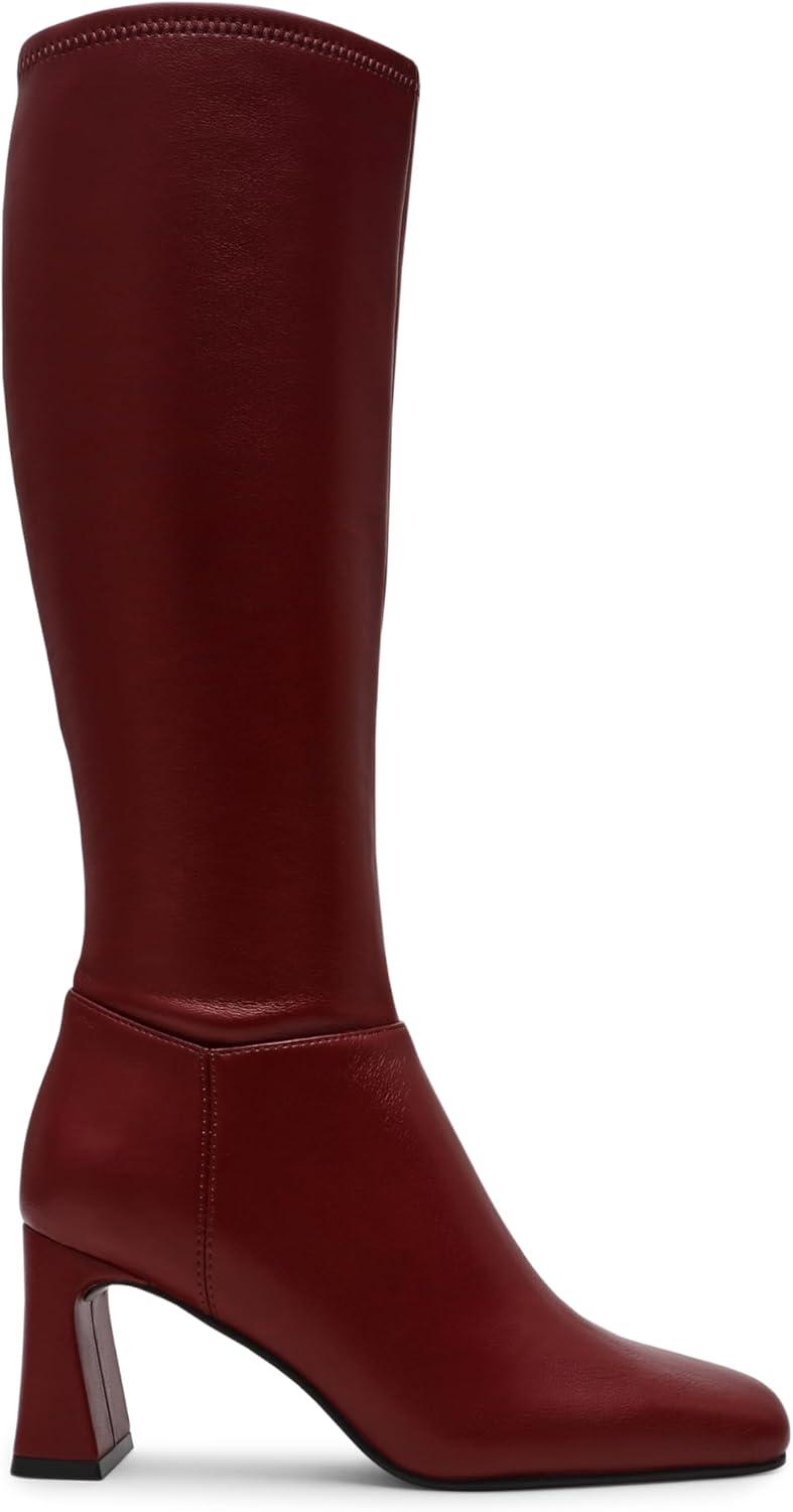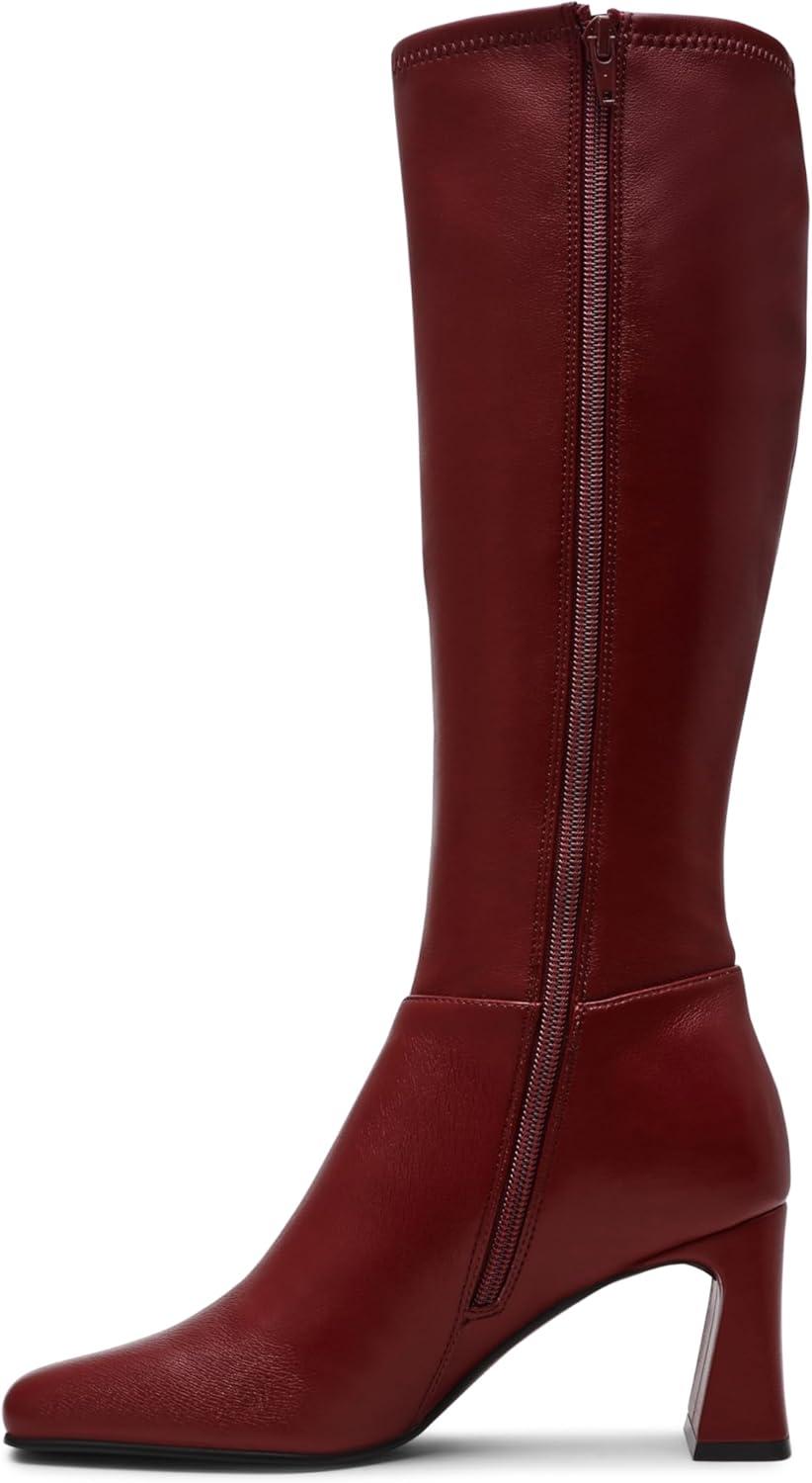 The Hunny Boot is a sleek leather boot featuring a knee high silouhette and calf defining look with a flared heel.