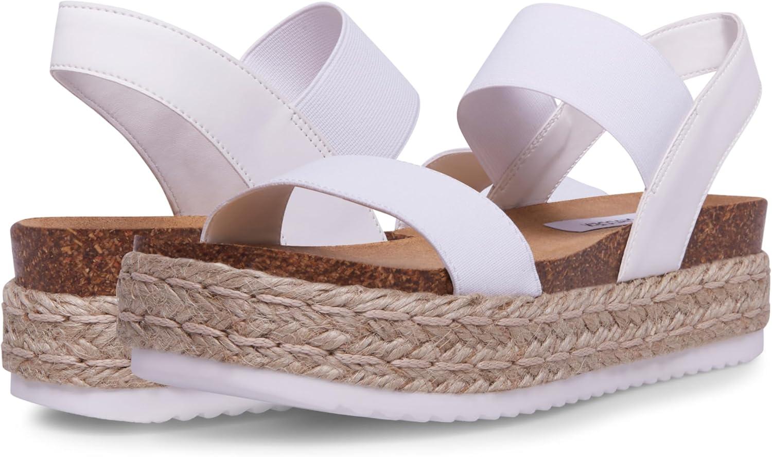 JAKLIN sandals by Steve Madden are the perfect go-to warm weather shoe. The sandals feature an espadrille heel with a lug sole and a double strap design.