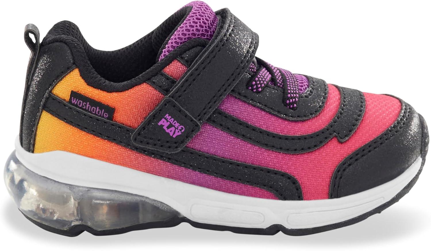 The Stride Rite M2P Surge Bounce is a lighted athletic sneaker designed to bring excitement to your child's every step. It has received APMA approval, ensuring proper foot development and support. The Ortholite Memory Foam provides superior cushioning for all-day comfort. The easy-on design features a hook and loop closure with elastic laces, allowing for a secure and adjustable fit. The 100% recycled linings reflect our commitment to sustainability. The lighted feature adds an extra element of fun to each stride. Made2Play technology makes this sneaker machine washable, ensuring easy cleaning and maintenance. The breathable materials and durable construction make it perfect for active play. Additionally, the special treatment helps reduce odors, keeping feet fresh even during intense activities. Choose the Stride Rite M2P Surge Bounce for a lighted and comfortable athletic sneaker that will keep your child moving and grooving with style.