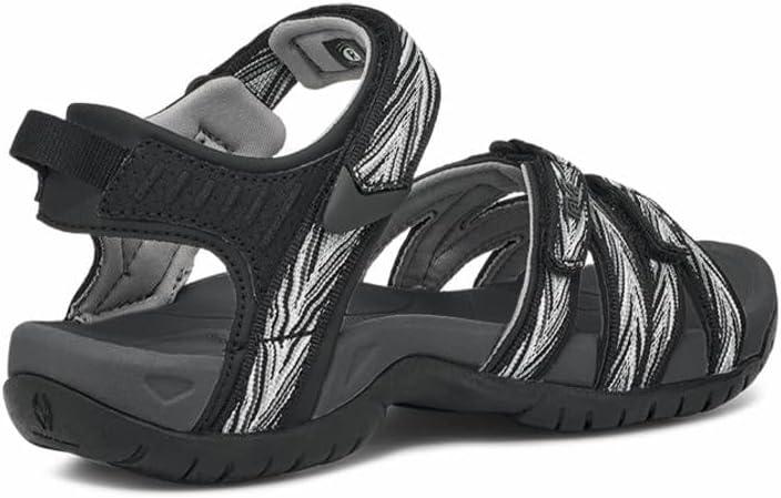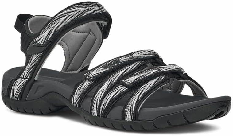 The Tirra from Teva is the perfect sandal for outdoor adventures. It features a quick-dry upper with a foam and stretch mesh lining for comfort. A spongy footbed cushions every step and absorbs shock, and a patterned rubber outsole offers traction and durability. Plus three hook-and-loop straps allow for a perfect fit.