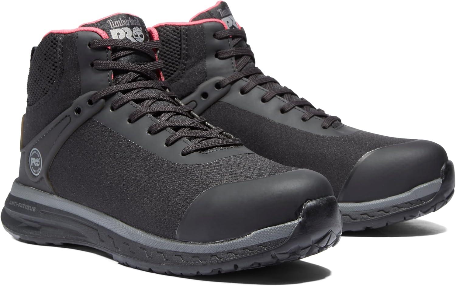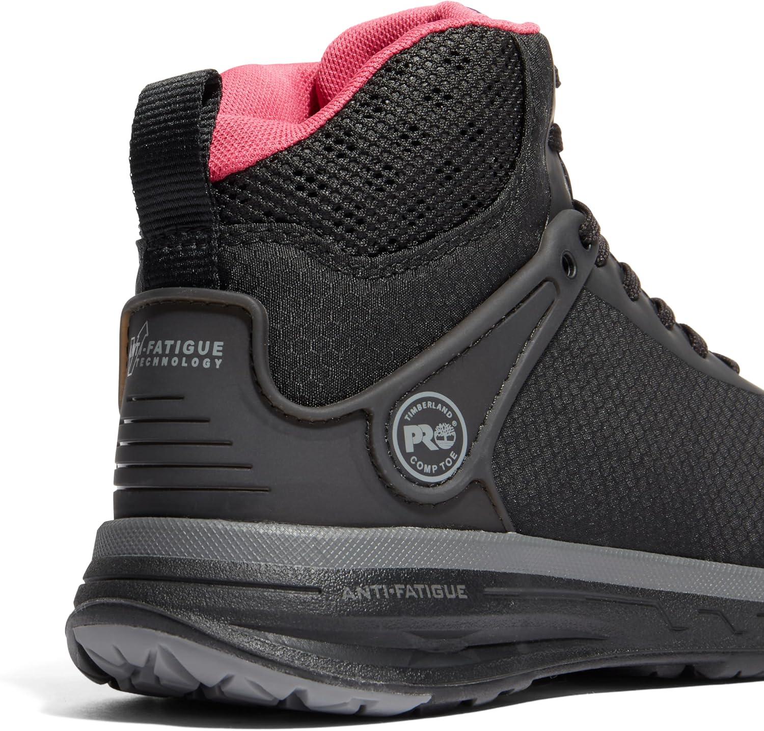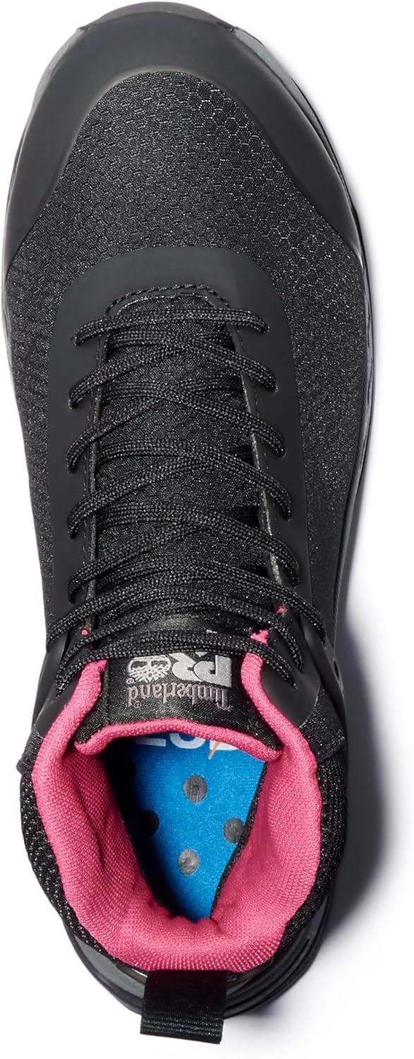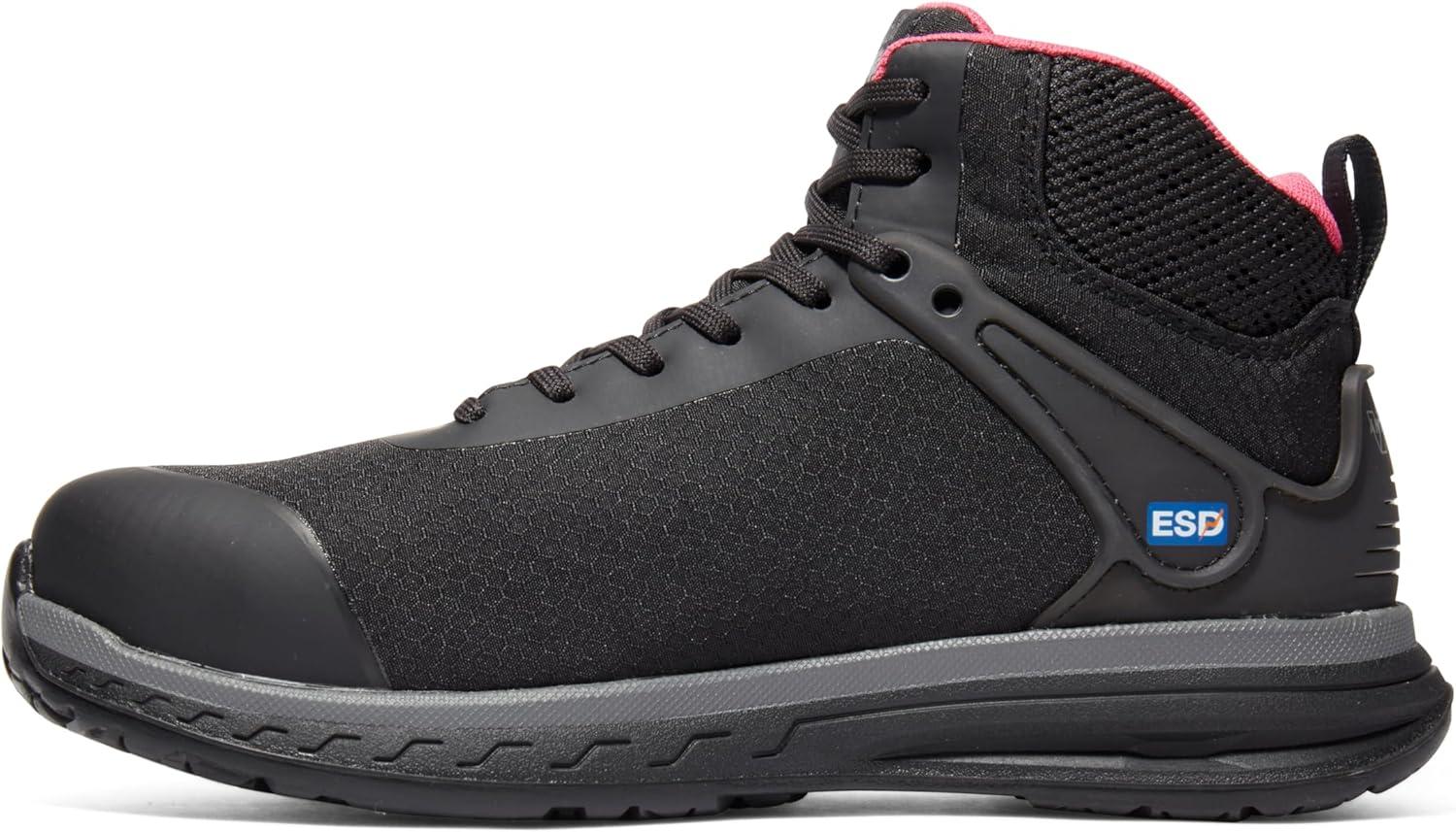Timberland PRO Women’s Drivetrain Mid Composite Safety Toe Static Dissipative Industrial Athletic Work Shoe(Black/Pink-2024 New)