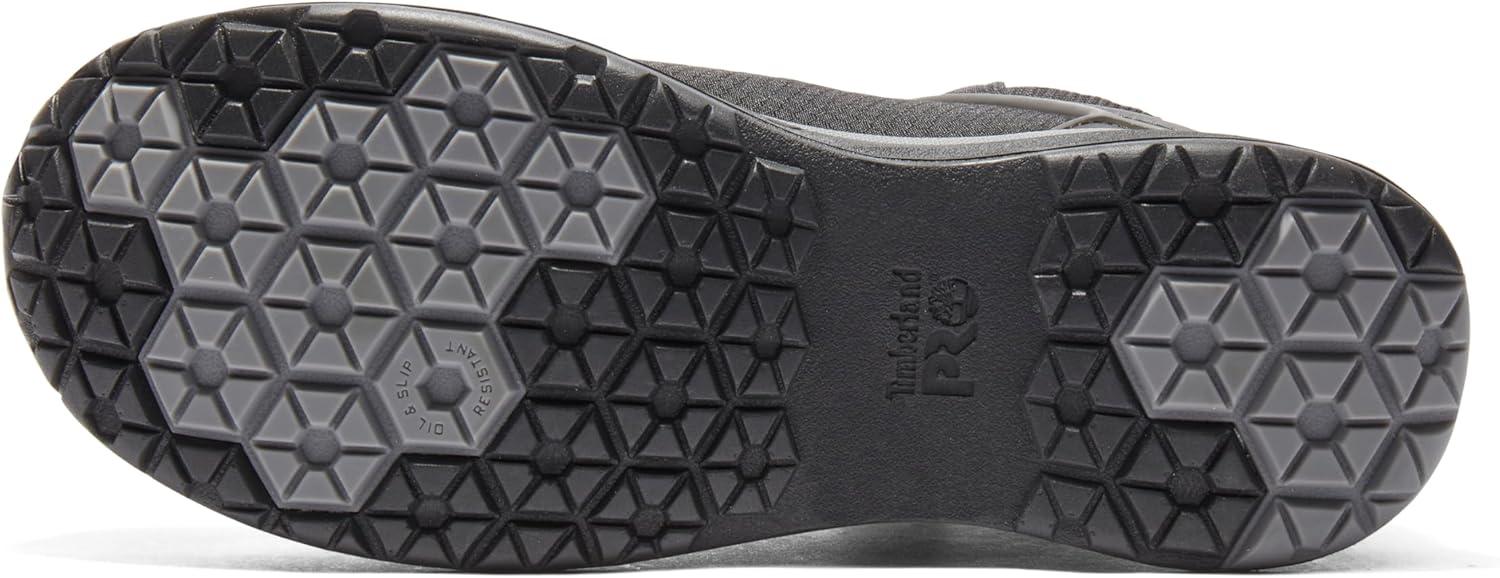 Built specifically for a comfortable women's fit, our metal-free Timberland PRO Drivetrain athletic work boots offer lightweight comfort, but they're all business when it comes to protection. Not only are their abrasion-resistant ripstop mesh uppers tough enough to handle working on your feet all day, they feature composite safety toes, TPU toe overlays, and are designed for Electro Static Dissipating (ESD) compliance to minimize hazards from static electricity buildup. For comfort, we added Anti-Fatigue Technology for all-day shock absorption and energy return and a breathable, moisture-wicking lining made of ReBOTL material containing at least 50% recycled plastic. Plus, their lightweight outsoles are made of heat-, oil-, slip-, and abrasion-resistant, non-marking, all-weather TPU for enhanced traction.