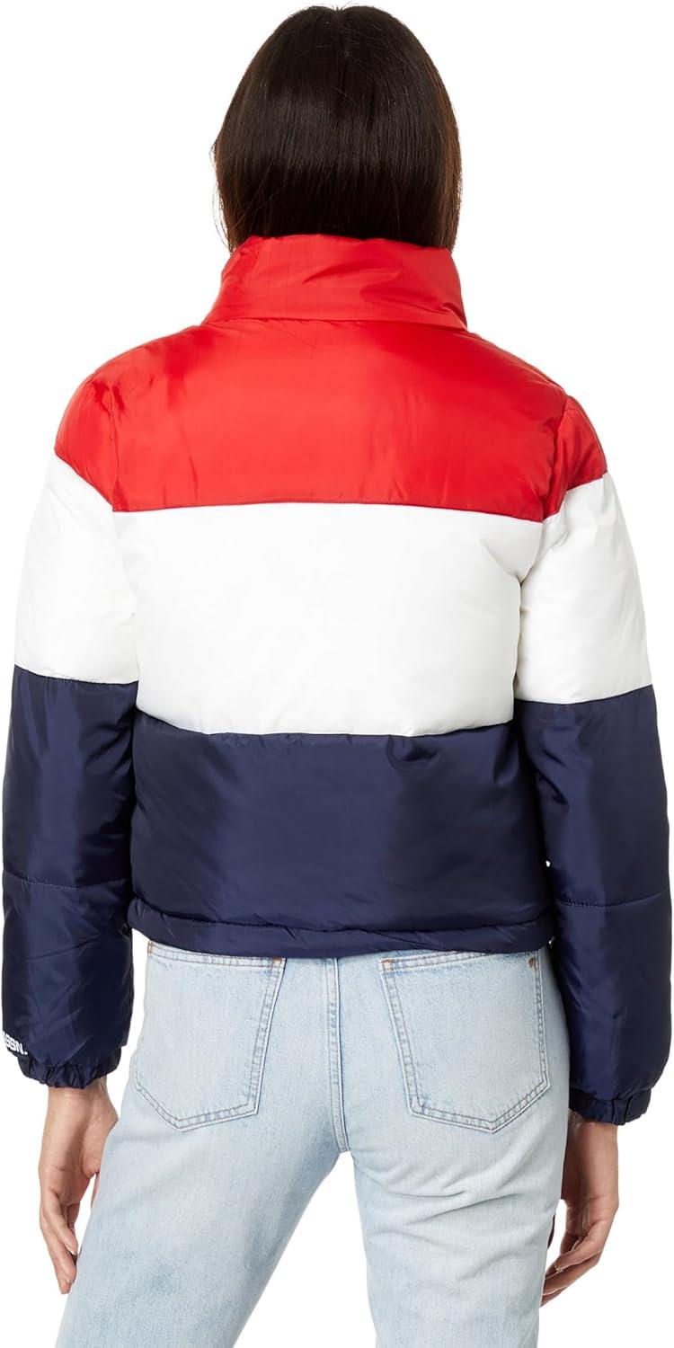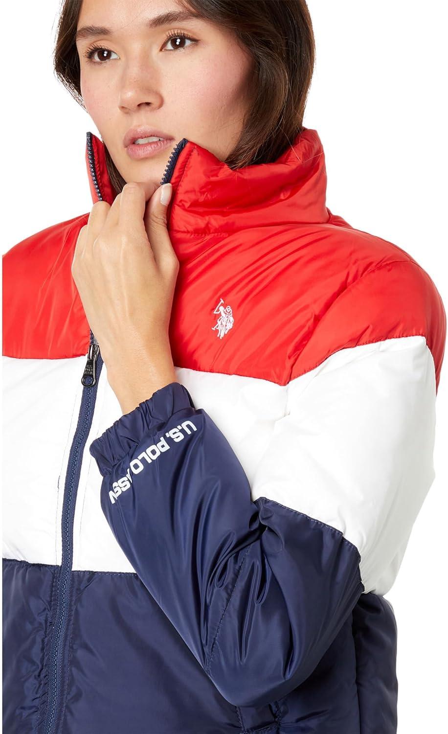 U.S. POLO ASSN. Crop Multi Color-Blocked Puffer Jacket(Racing Red)