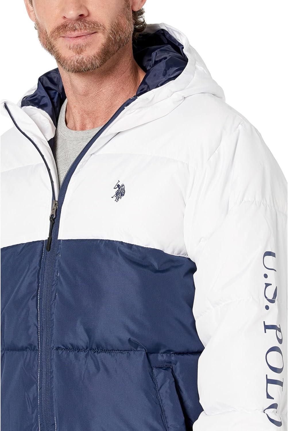 U.S. POLO ASSN. Mens Color-blocked Padded Puffer(White)