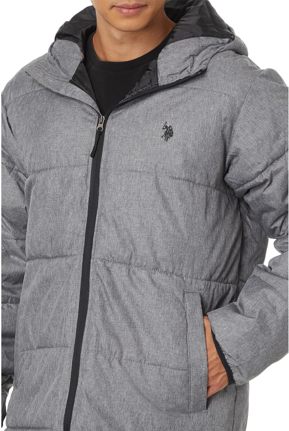 U.S. Polo Assn. Men’s Heathered Moderate Puffer(Dark Grey Heather)