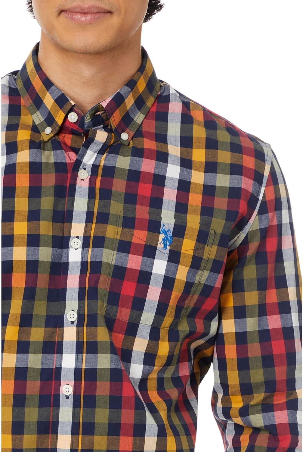 U.S. Polo Assn. Men’s Long Sleeve Classic Fit 1 Pocket Yarn Dye Poplin Multicolor Woven Shirt(Classic Navy)
