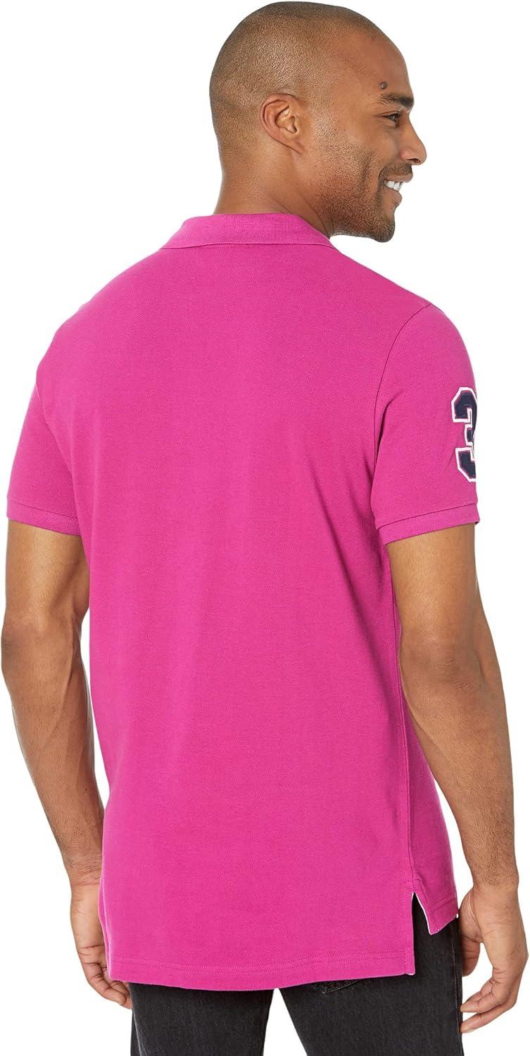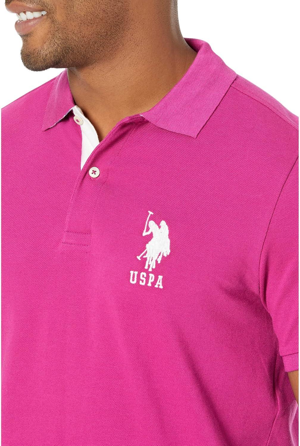 U.S. Polo Assn. Men’s Short-Sleeve Polo Shirt with Applique, Casual Summer Slim Fit Polo Shirt with Contrast Color(Hillsdale Fuchsia)