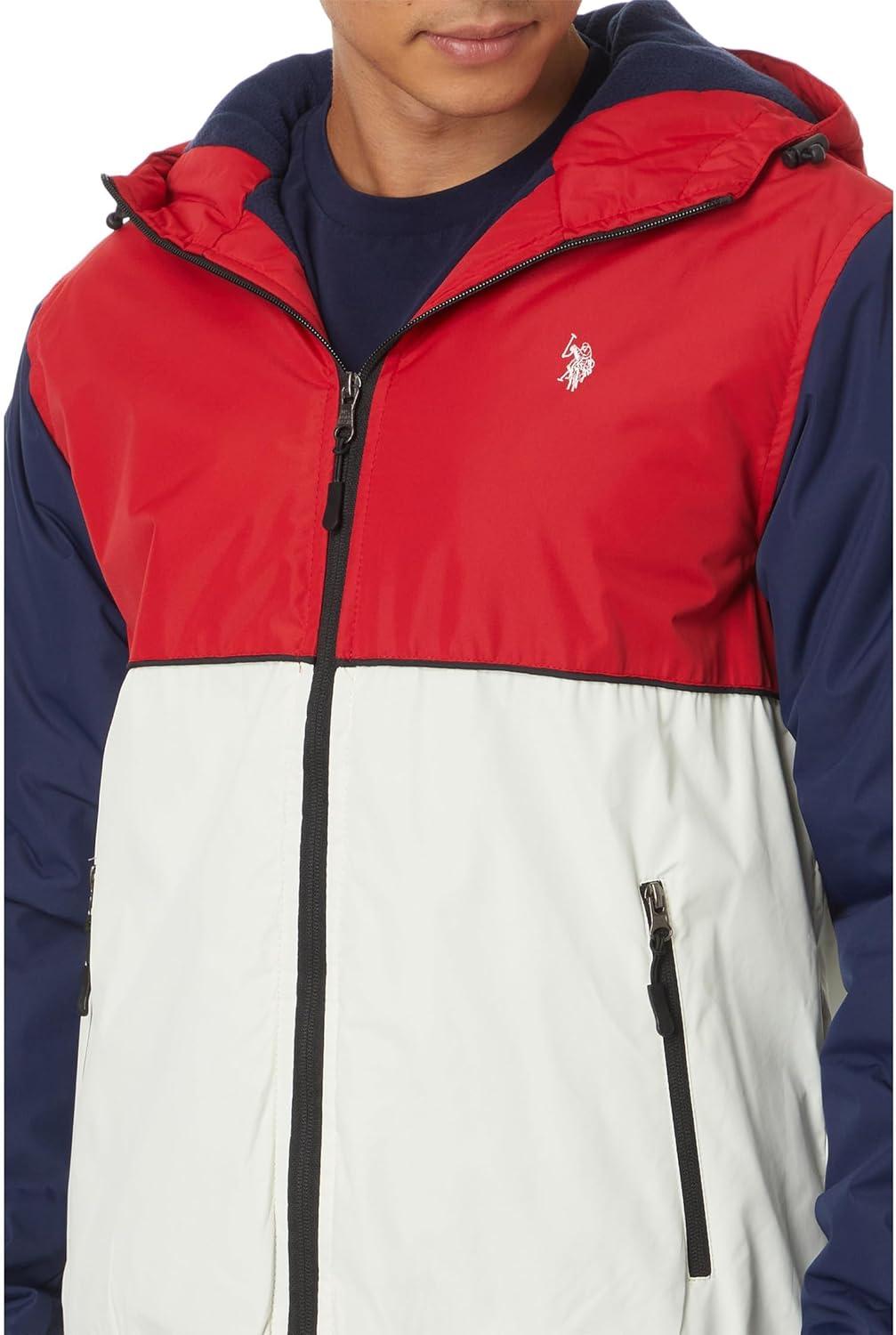U.S. POLO ASSN. Mens Uspa Americana Hooded Polar Fleece Windbreaker(Engine Red)