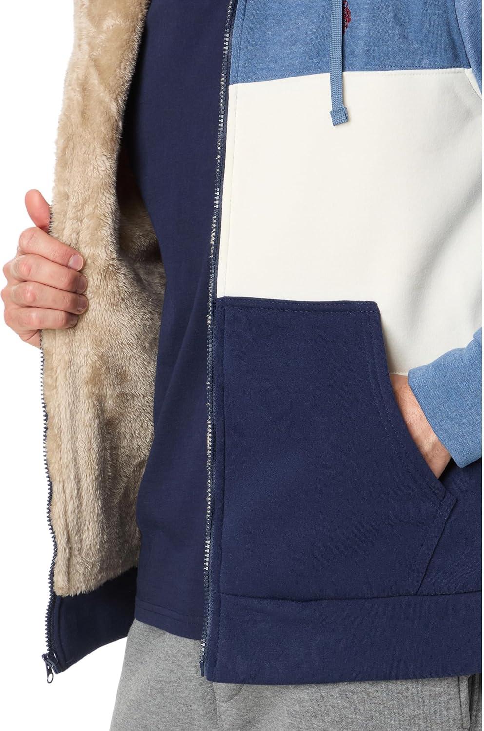 U.S. Polo Assn. Men’s USPA Color-Block Full Zip Sherpa Hoodie(Colorado Blue Heather)