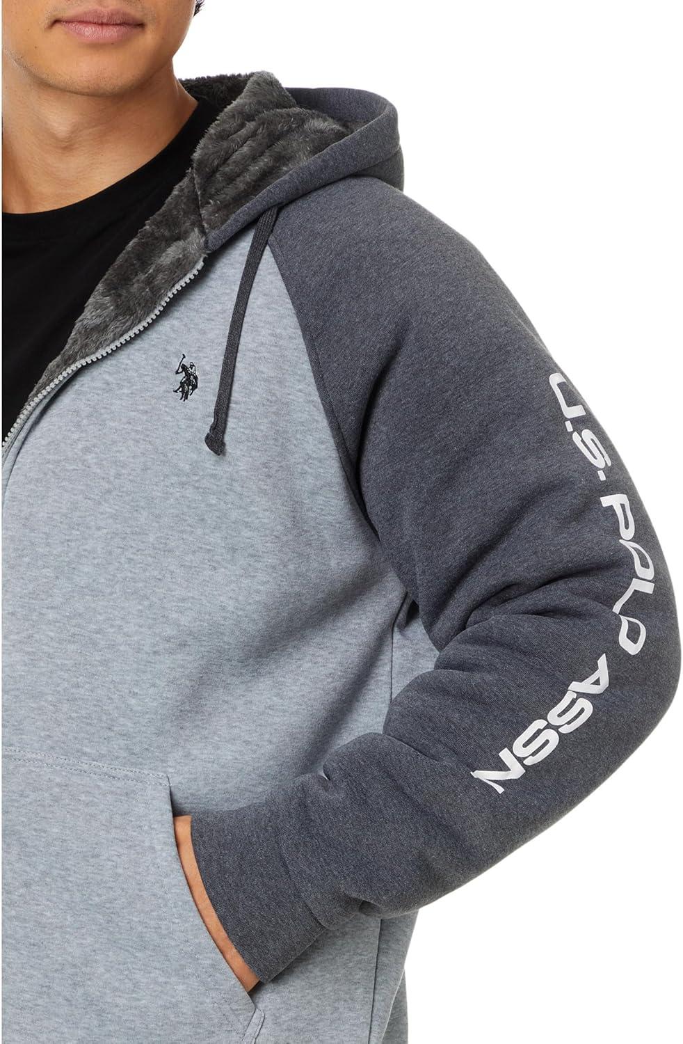 U.S. Polo Assn. Men’s USPA Contrast Raglan Sleeve Sherpa Hoodie Heather Grey Large