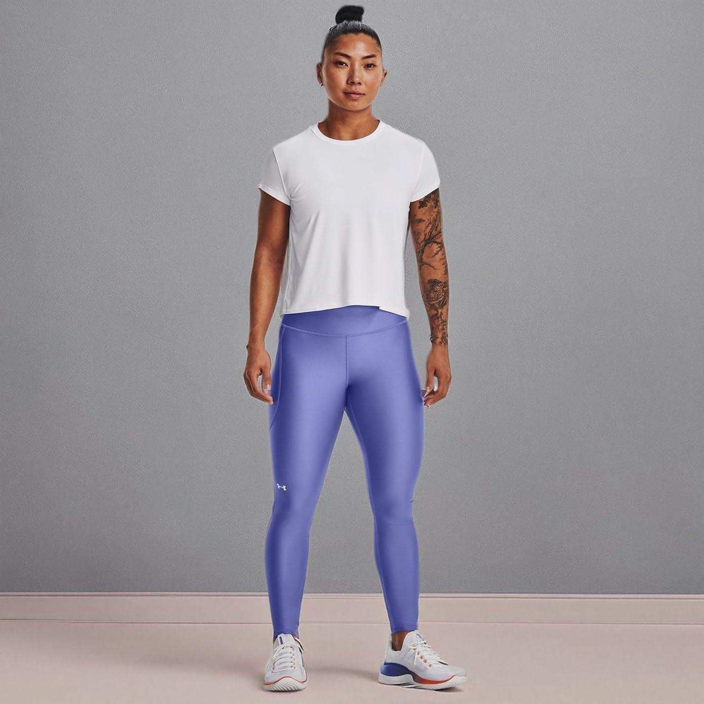 Super-light HeatGear fabric delivers superior coverage without weighing you down. Material wicks sweat & dries really fast. 4-way stretch construction moves better in every direction. Ergonomic flatlock seams deliver a comfortable, chafe-free fit. High-rise waist for optimal coverage & support. Inseam: 28.5″.