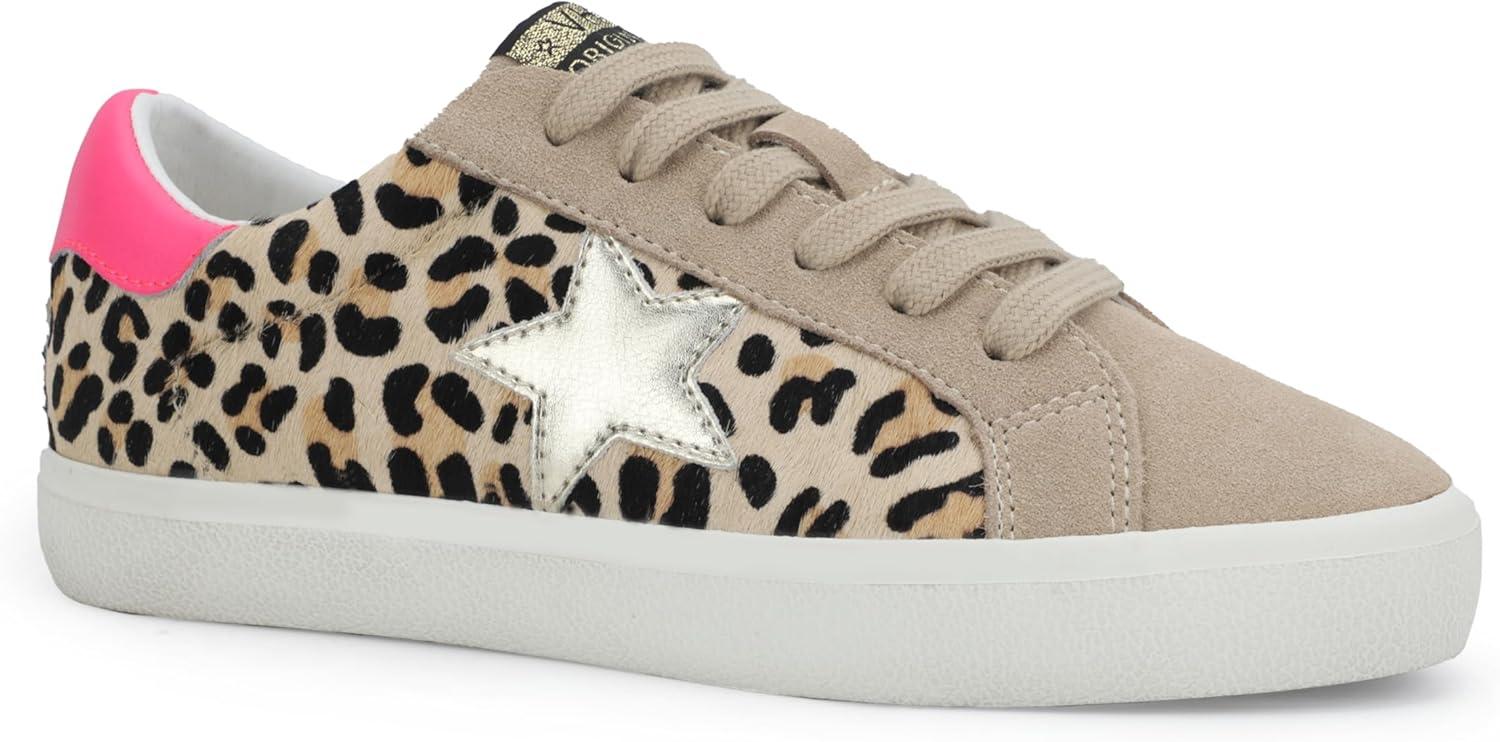 VINTAGE HAVANA Womens Flair Glitter Slip On Sneakers Shoes Casual – Gold, Grey, Silver(Leopard Pink Pop)
