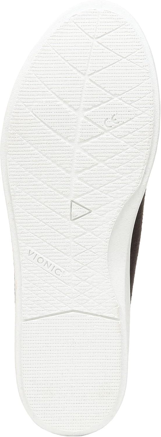 Sprint in style wearing the comfortable VIONIC Beach Manzanita sneakers. Linen upper. Textile lining. Removable Twill Covered ethyl vinyl acetate footbed. Slip-on style. Brand detailing on the footbed and heel contour. Allover gingham print. Round toe design. Thermoplastic rubber outsole.
