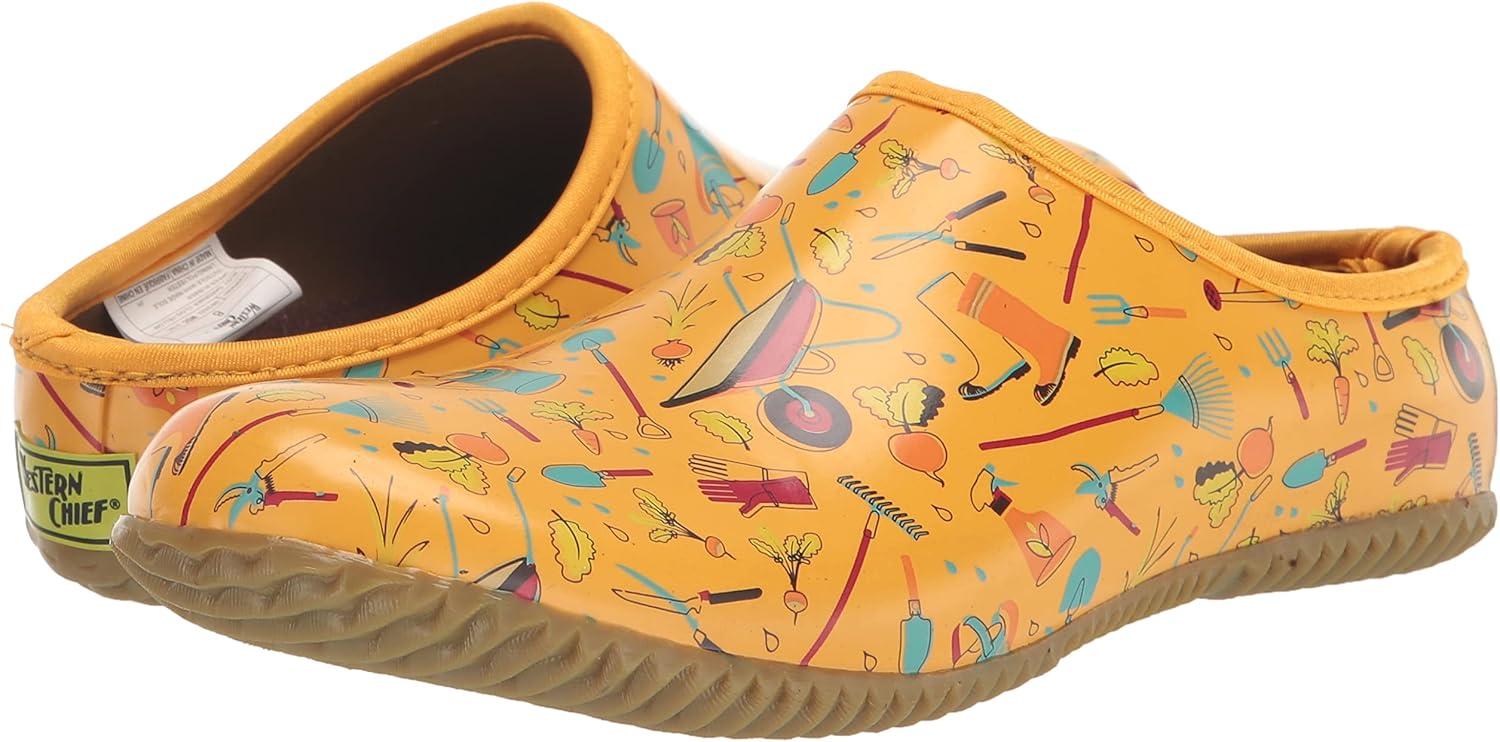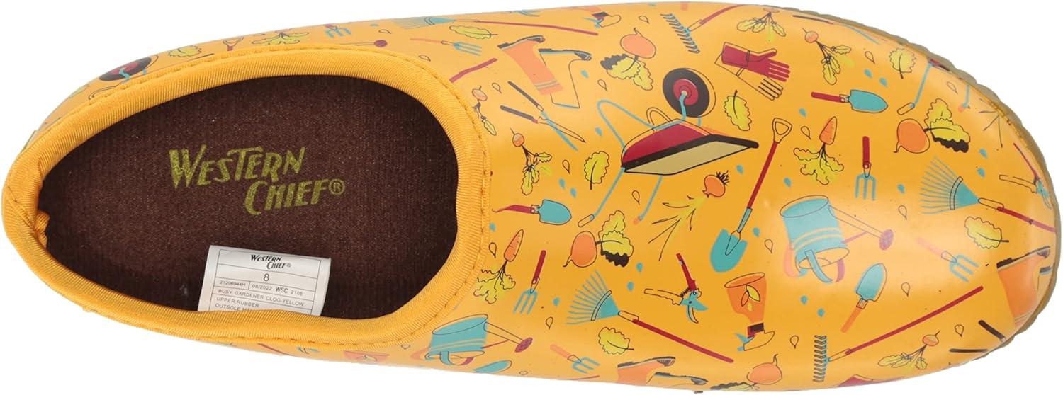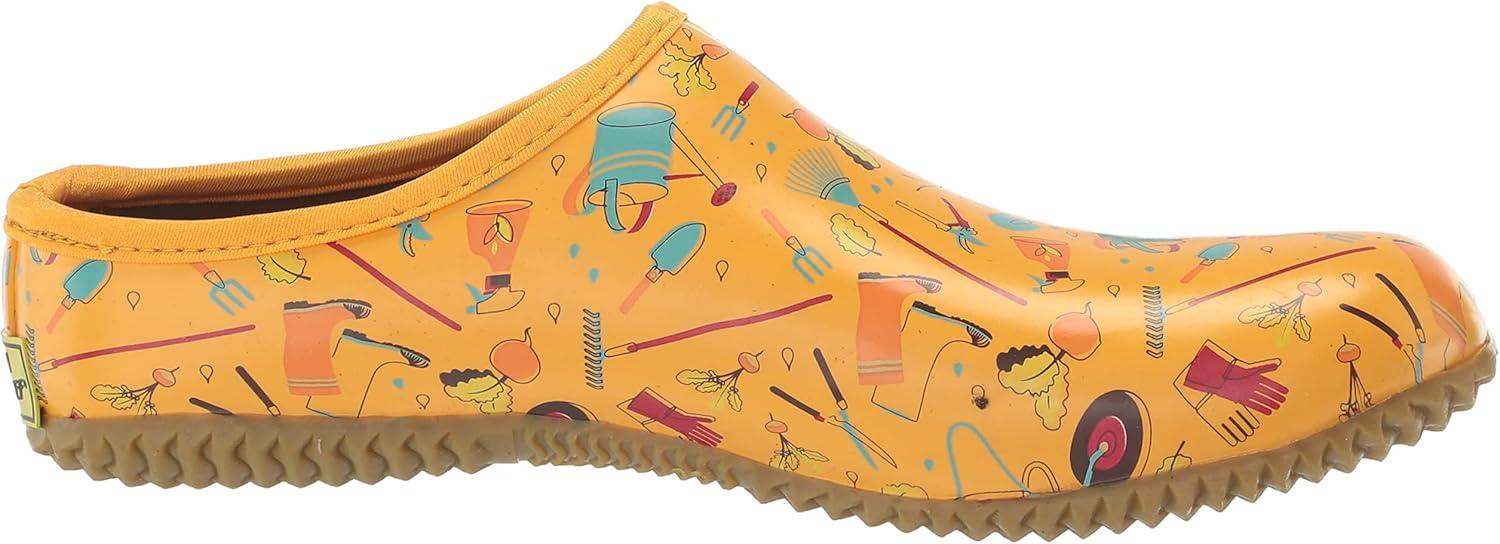 A Gardner’s favorite clog! Waterproof rubber upper with a soft-touch moisture-absorbent lining. Easy clean outsole so no dirt in the house! Fun bright prints to make your day out in the garden that much more fun!