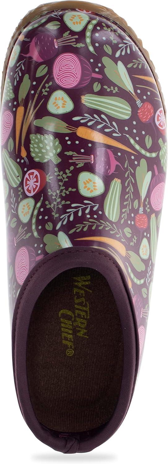 A Gardner’s favorite clog! Waterproof rubber upper with a soft-touch moisture-absorbent lining. Easy clean outsole so no dirt in the house! Fun bright prints to make your day out in the garden that much more fun!