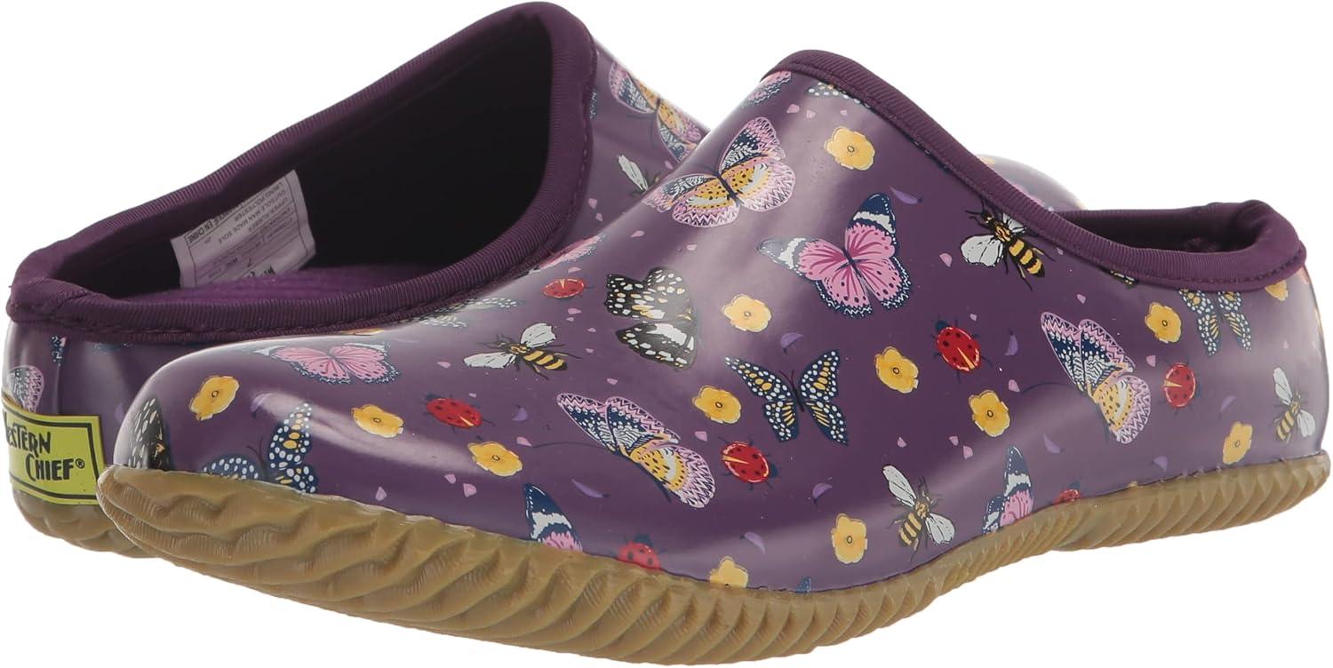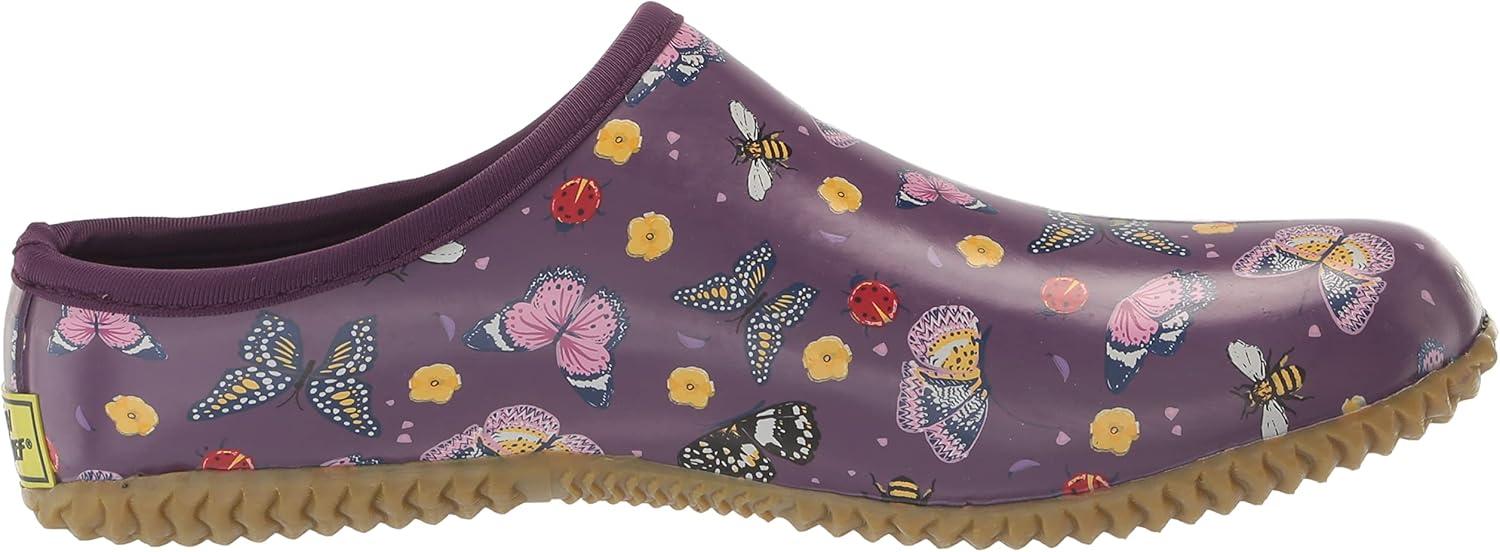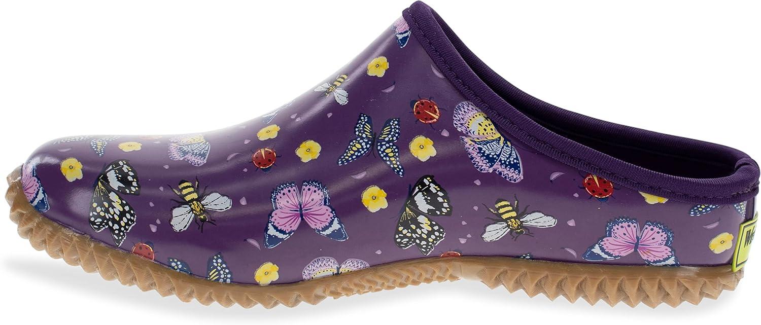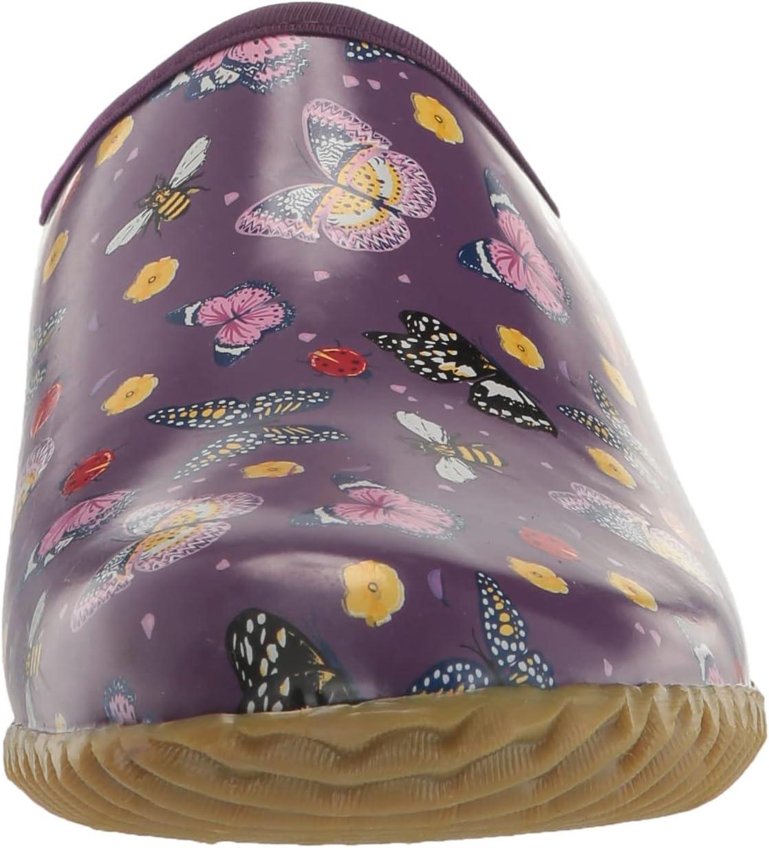 A Gardner’s favorite clog! Waterproof rubber upper with a soft-touch moisture-absorbent lining. Easy clean outsole so no dirt in the house! Fun bright prints to make your day out in the garden that much more fun!