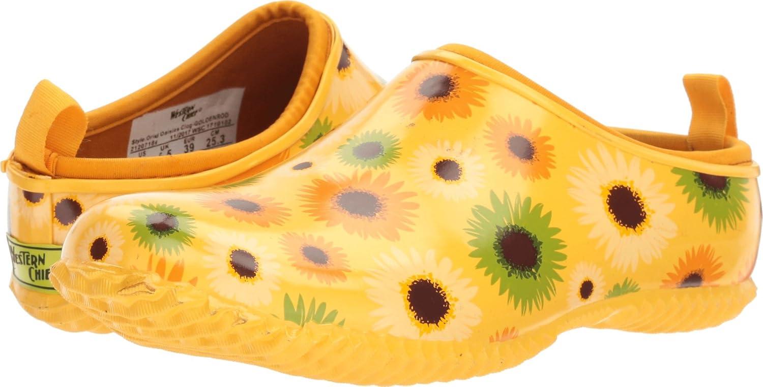 A Gardner’s favorite clog! Waterproof rubber upper with a soft-touch moisture-absorbent lining. Easy clean outsole so no dirt in the house! Fun bright prints to make your day out in the garden that much more fun!