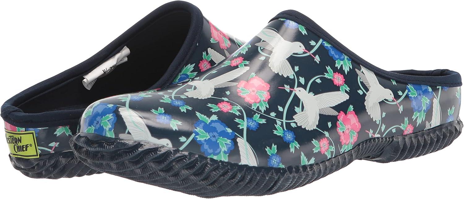 A Gardner’s favorite clog! Waterproof rubber upper with a soft-touch moisture-absorbent lining. Easy clean outsole so no dirt in the house! Fun bright prints to make your day out in the garden that much more fun!