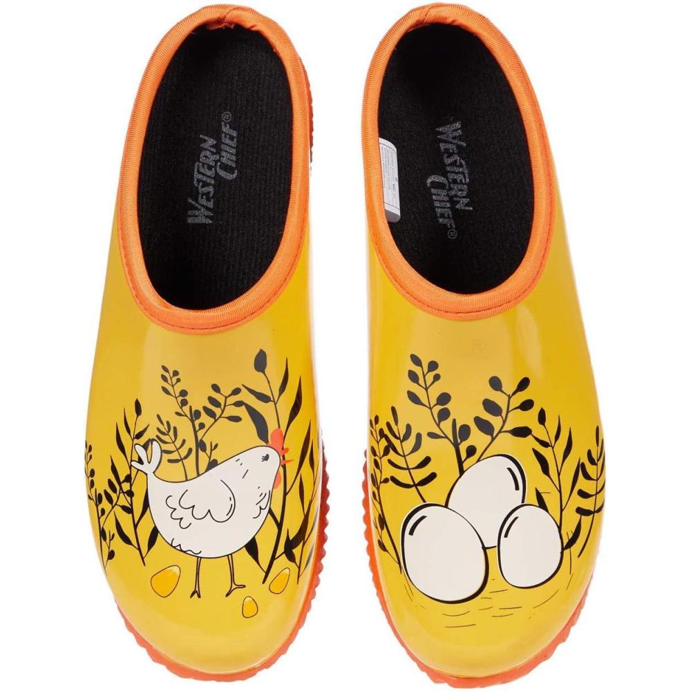 A Gardner’s favorite clog! Waterproof rubber upper with a soft-touch moisture-absorbent lining. Easy clean outsole so no dirt in the house! Fun bright prints to make your day out in the garden that much more fun!