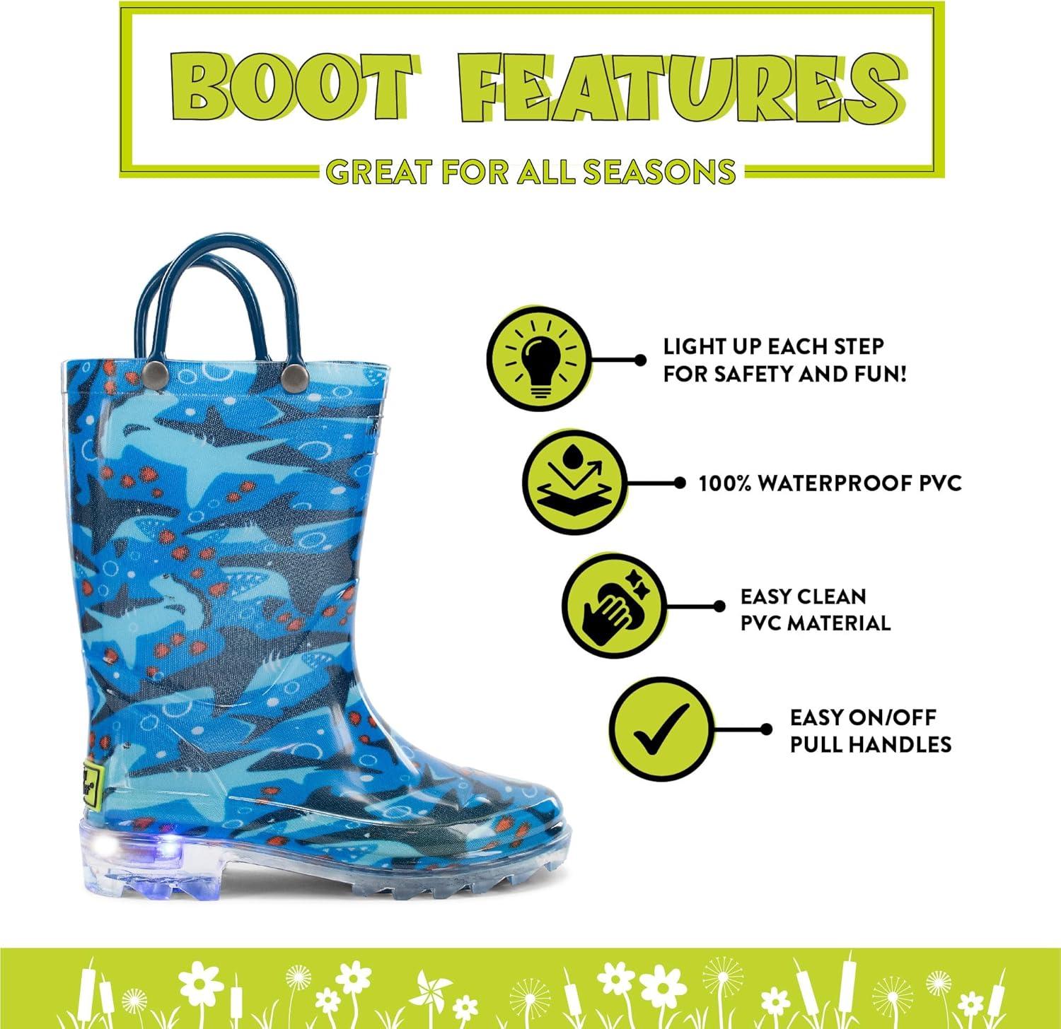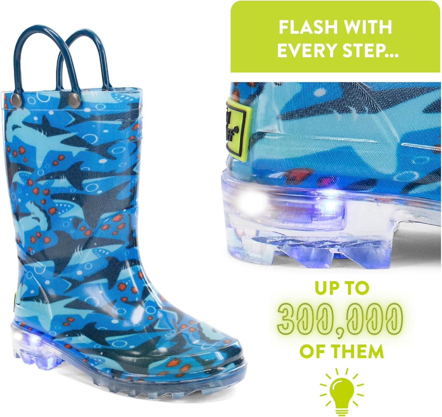 Western Chief Kids Waterproof Light Up Rain Boots With Handles for Easy On and Off for Boys and Girls(Blue)