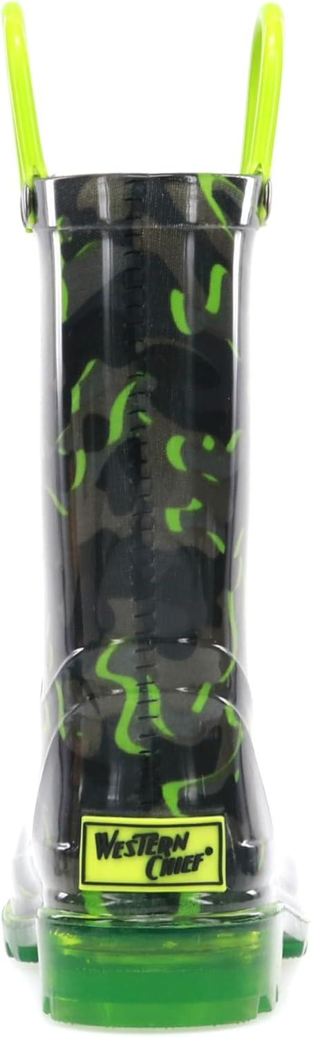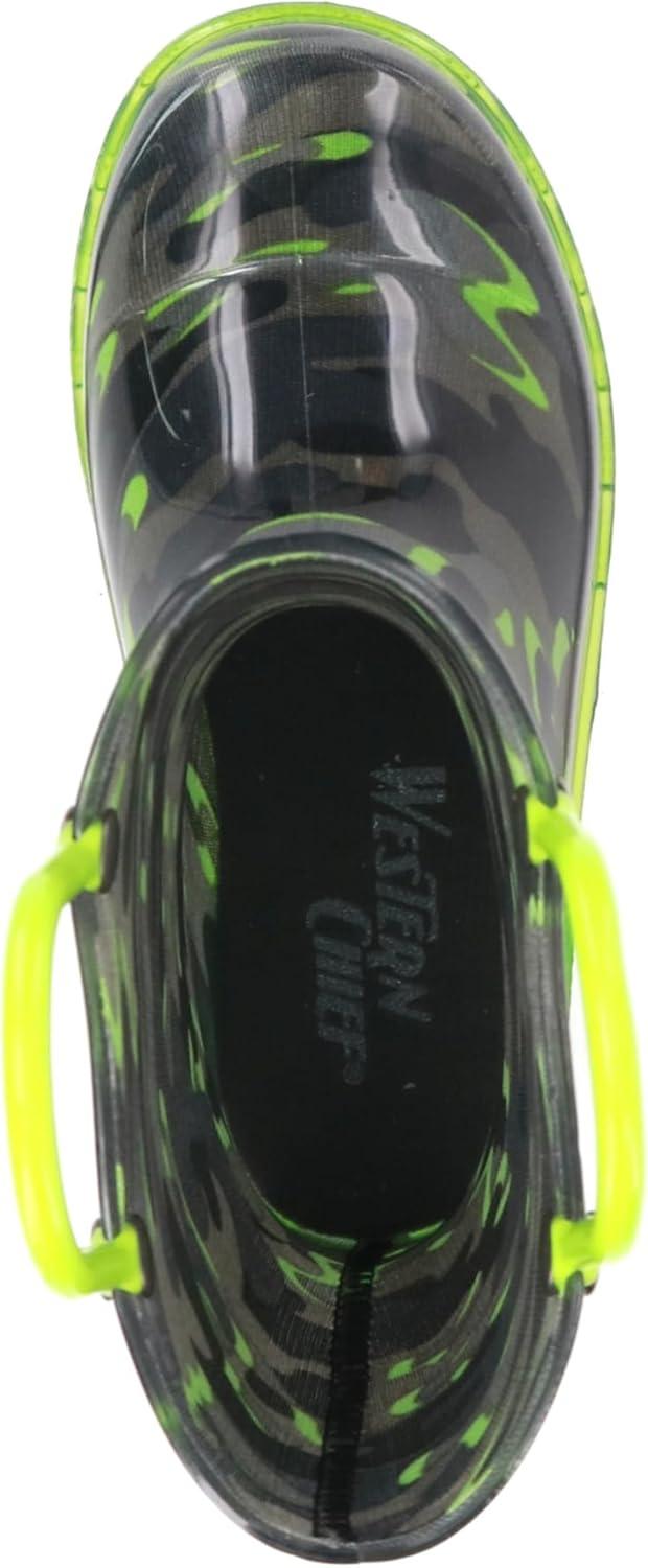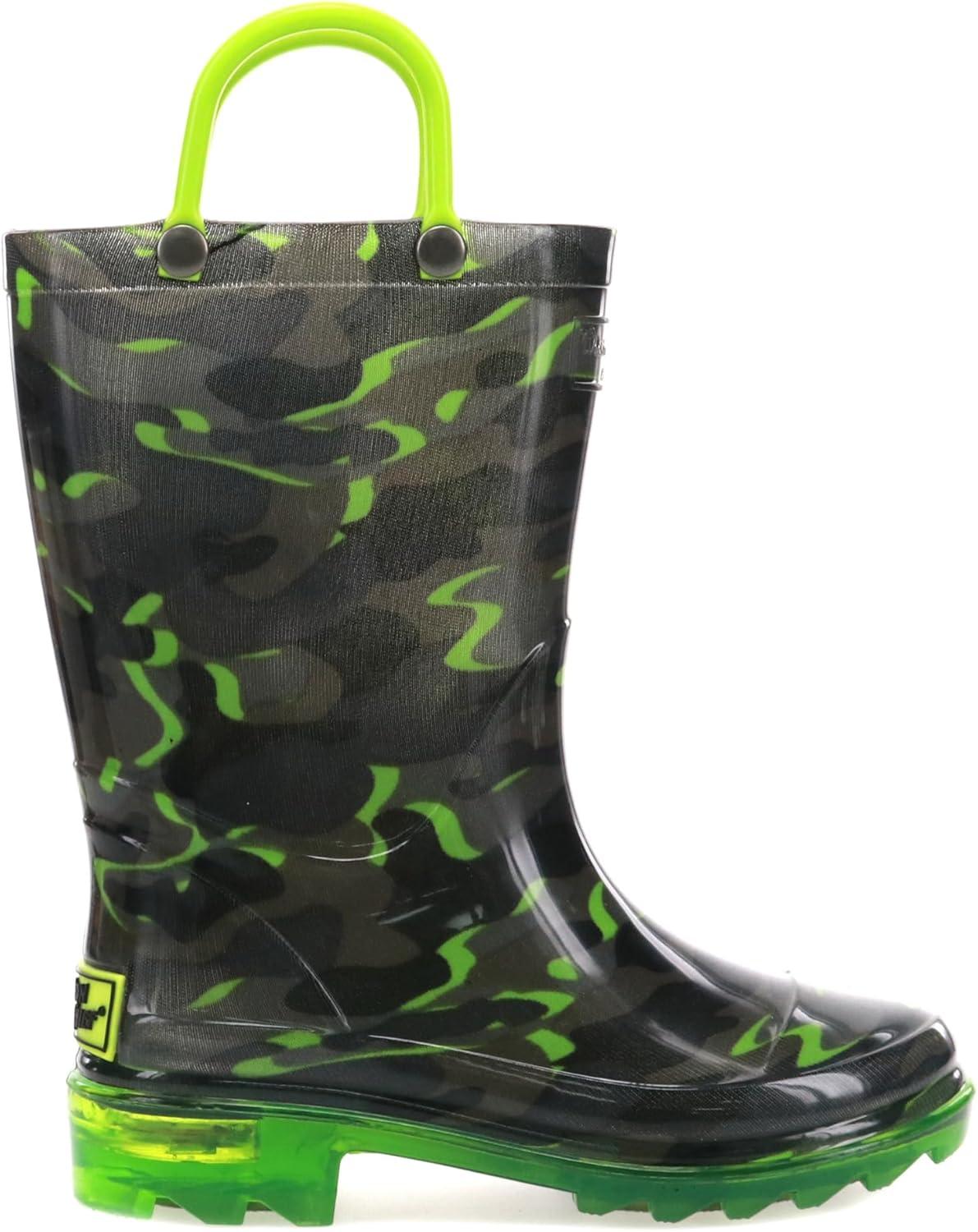 Western Chief Kids Waterproof Light Up Rain Boots With Handles for Easy On and Off for Boys and Girls(Surf Camo)