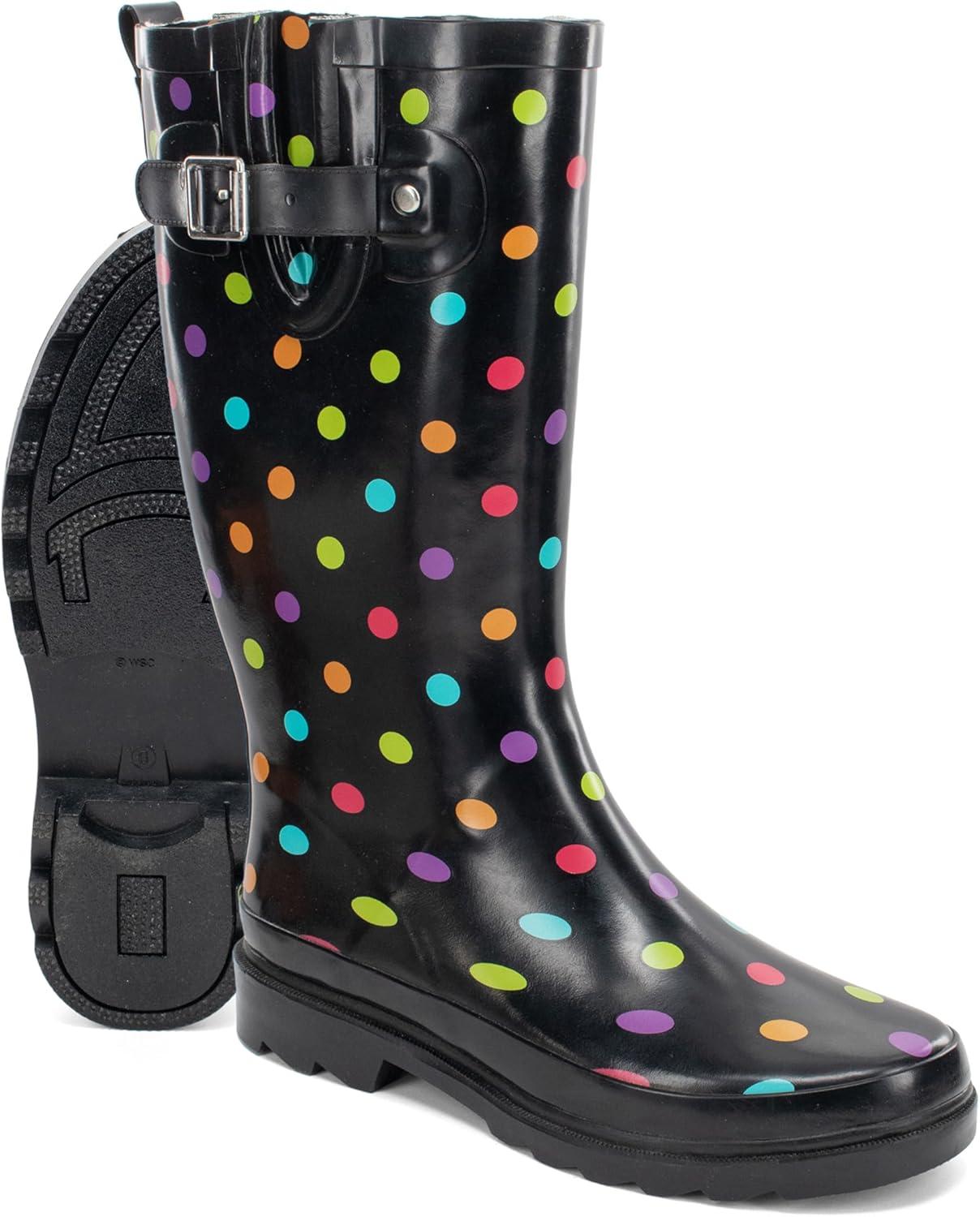 Western Chief Women’s Tall Waterproof Rain Boot Outdoor Garden Shoes(Dot City Black)