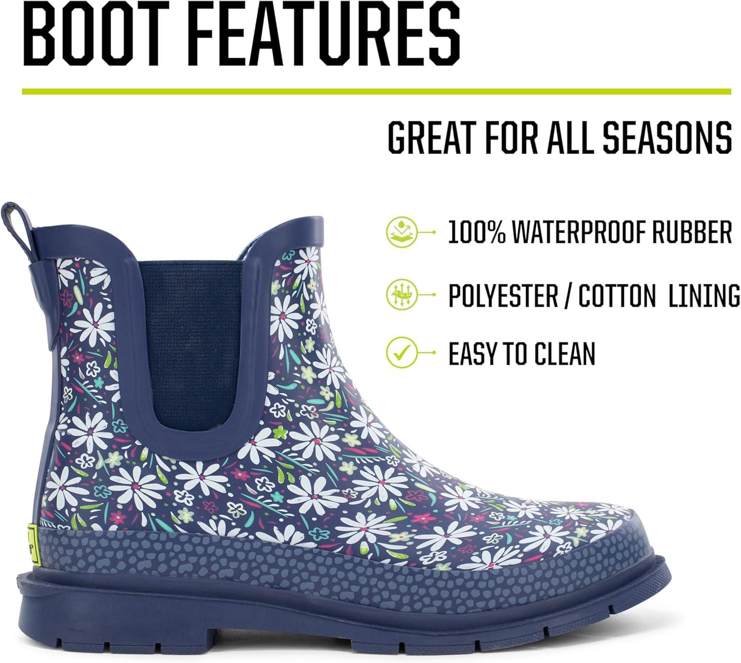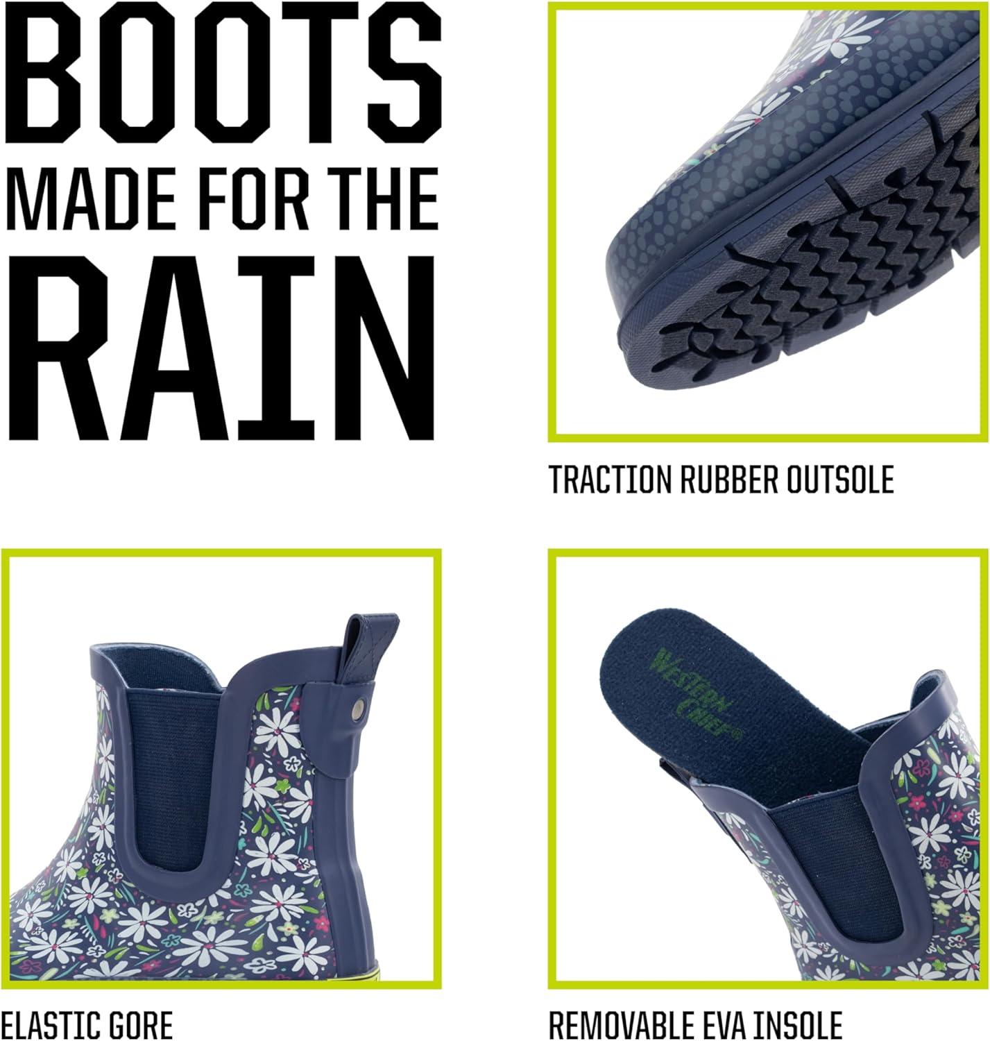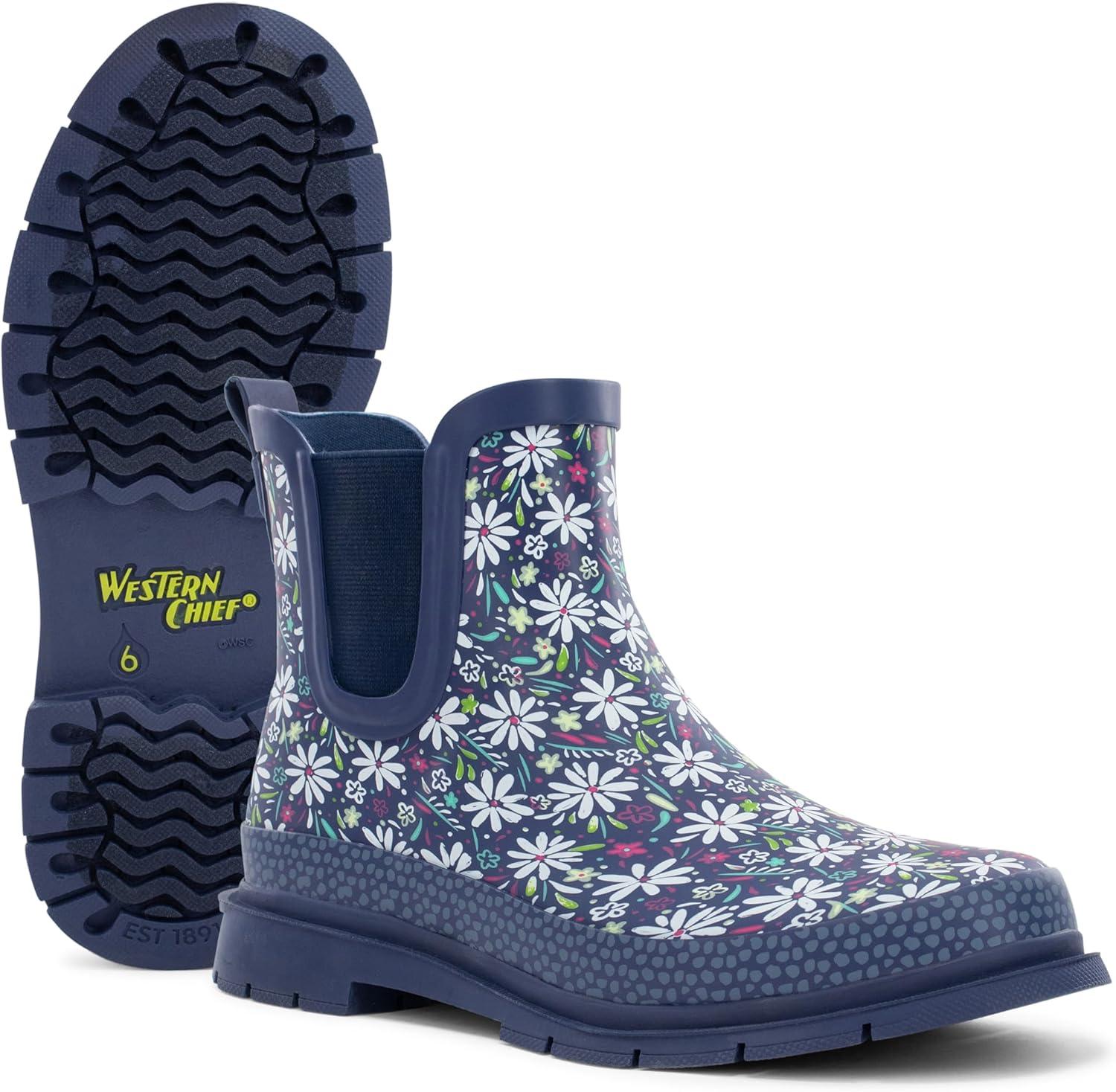 Western Chief Women’s Waterproof Chelsea Ankle Rain Boot with Elastic Gore and Rubber Lug Outsole – Stylish and Functional for Rainy Days(Daisy)