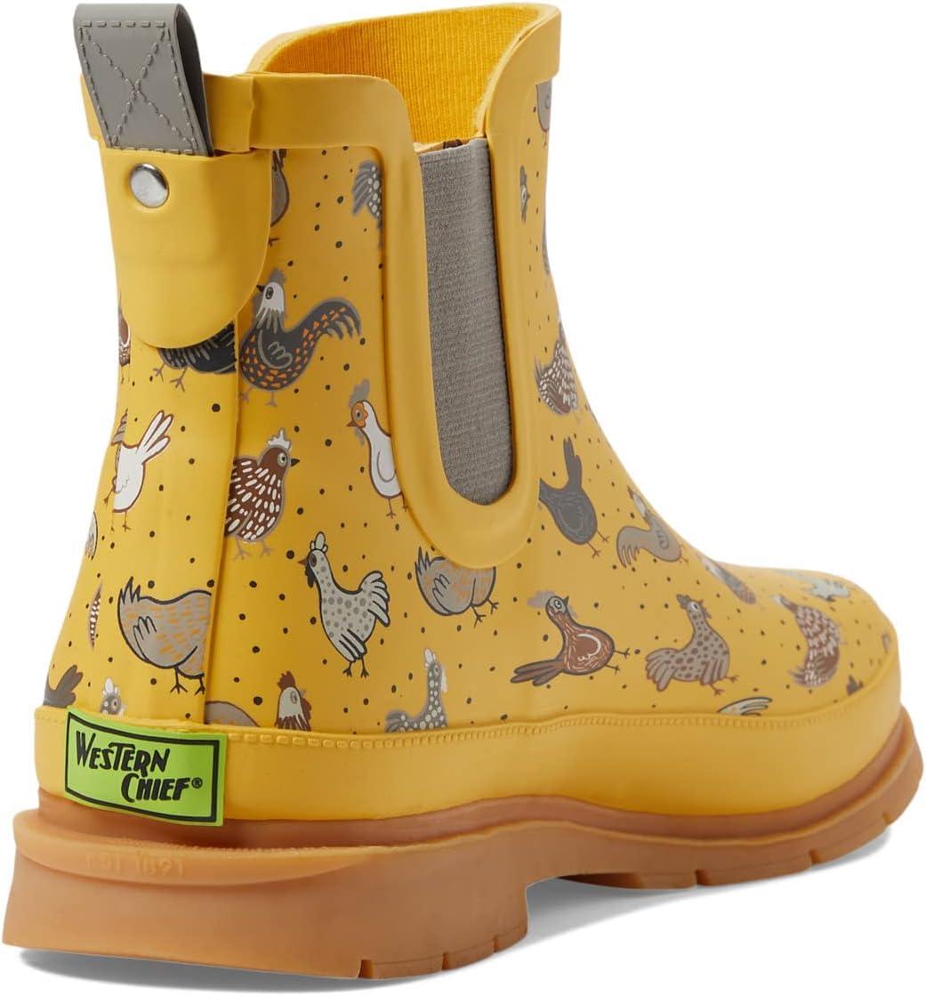 Western Chief Women’s Waterproof Chelsea Ankle Rain Boot with Elastic Gore and Rubber Lug Outsole – Stylish and Functional for Rainy Days(Hen Frenzy)