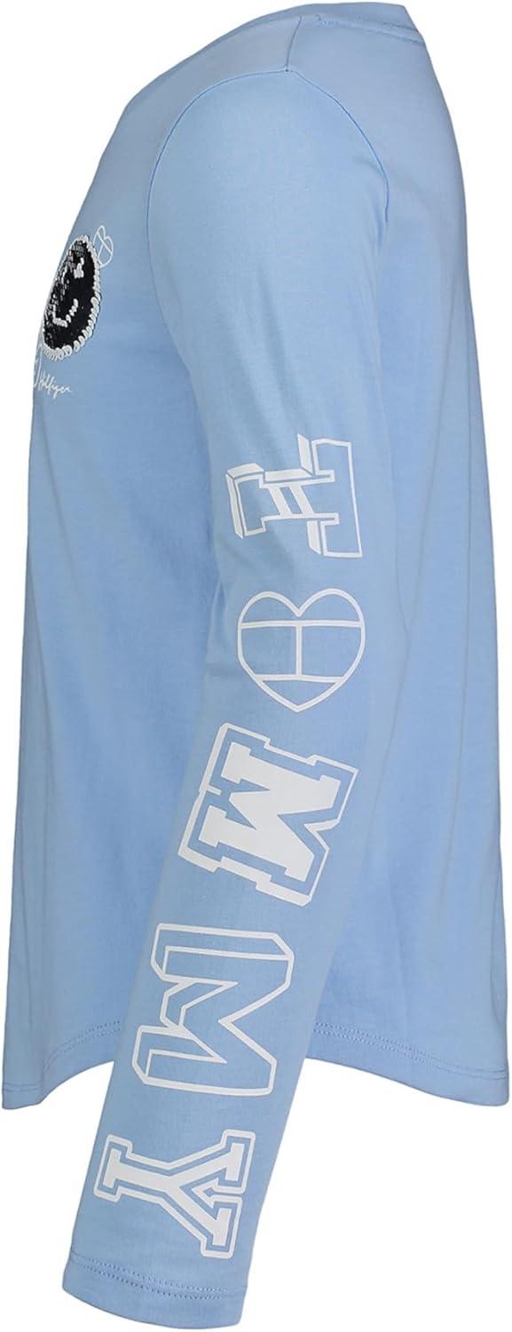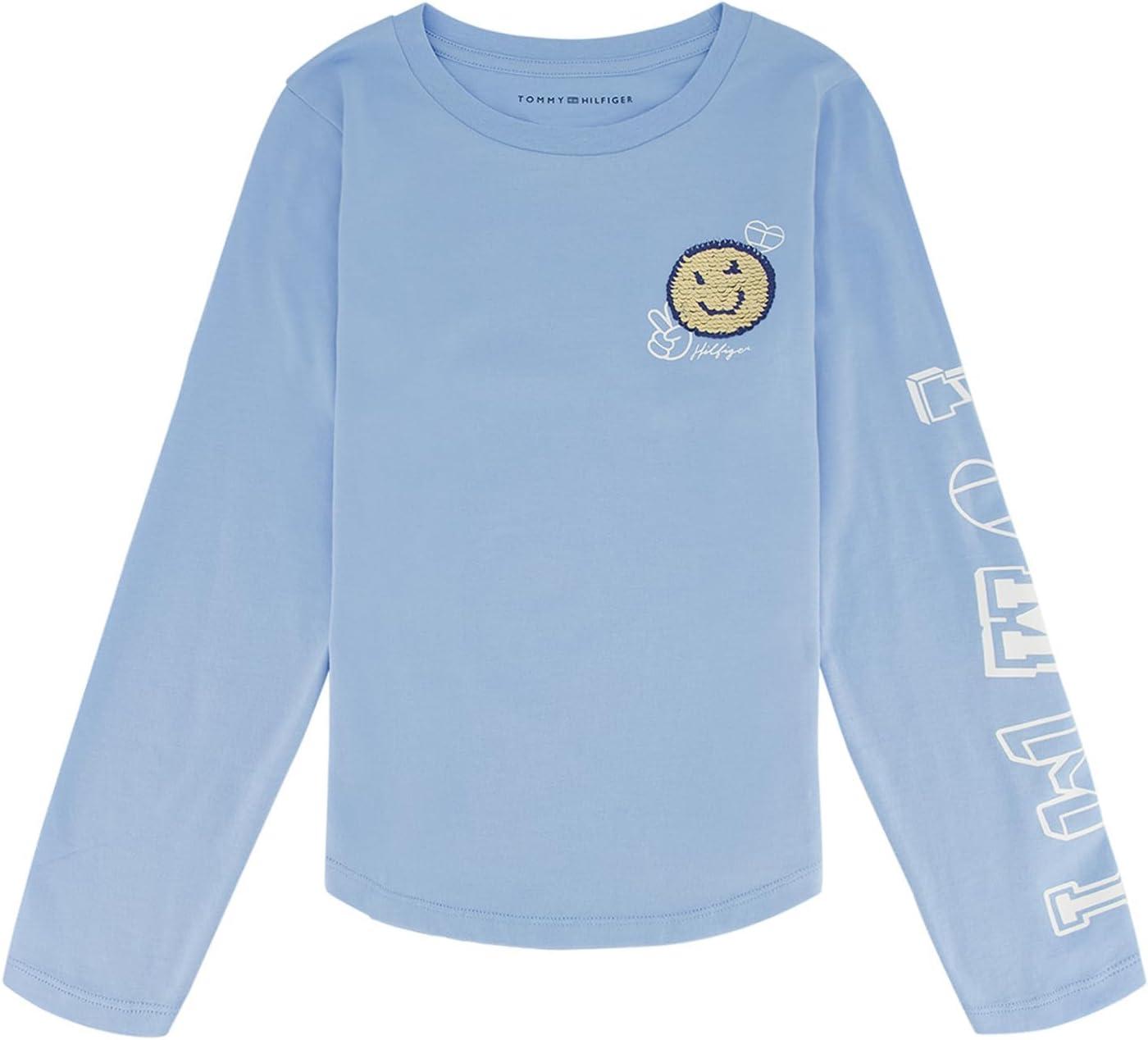 Tommy Hilfiger Girl’s Smiley Sequin Long Sleeve Tee (Big Kid)(Blue Bell)