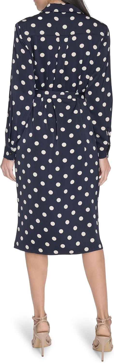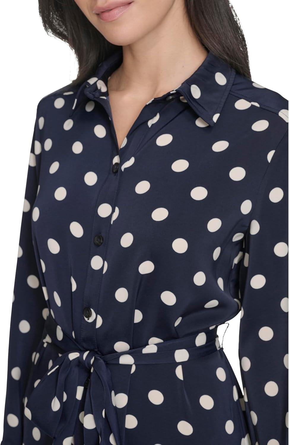 Calvin Klein Women’s Satin Polka Dot Shirt Dress(Indigo/Stony Beige)